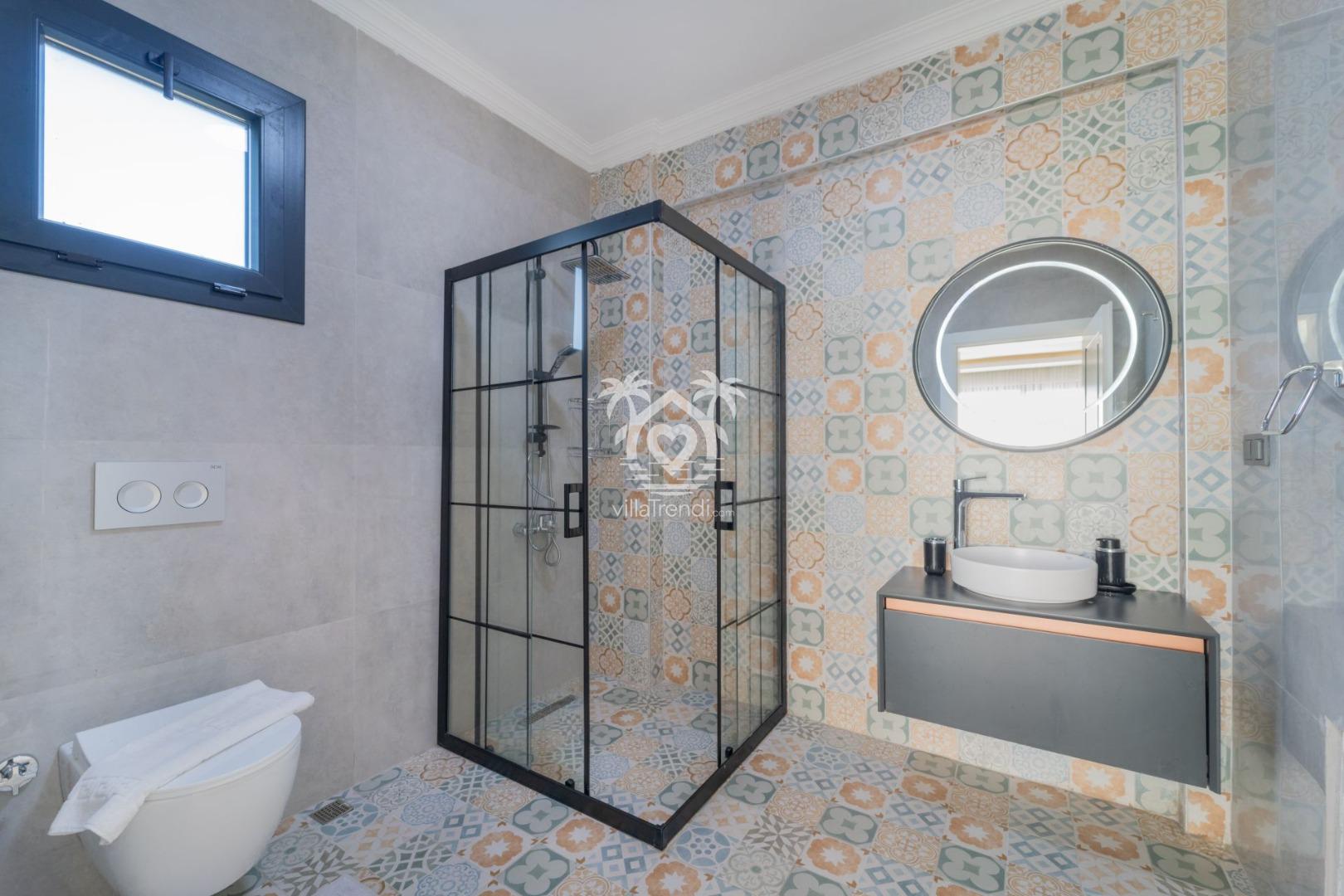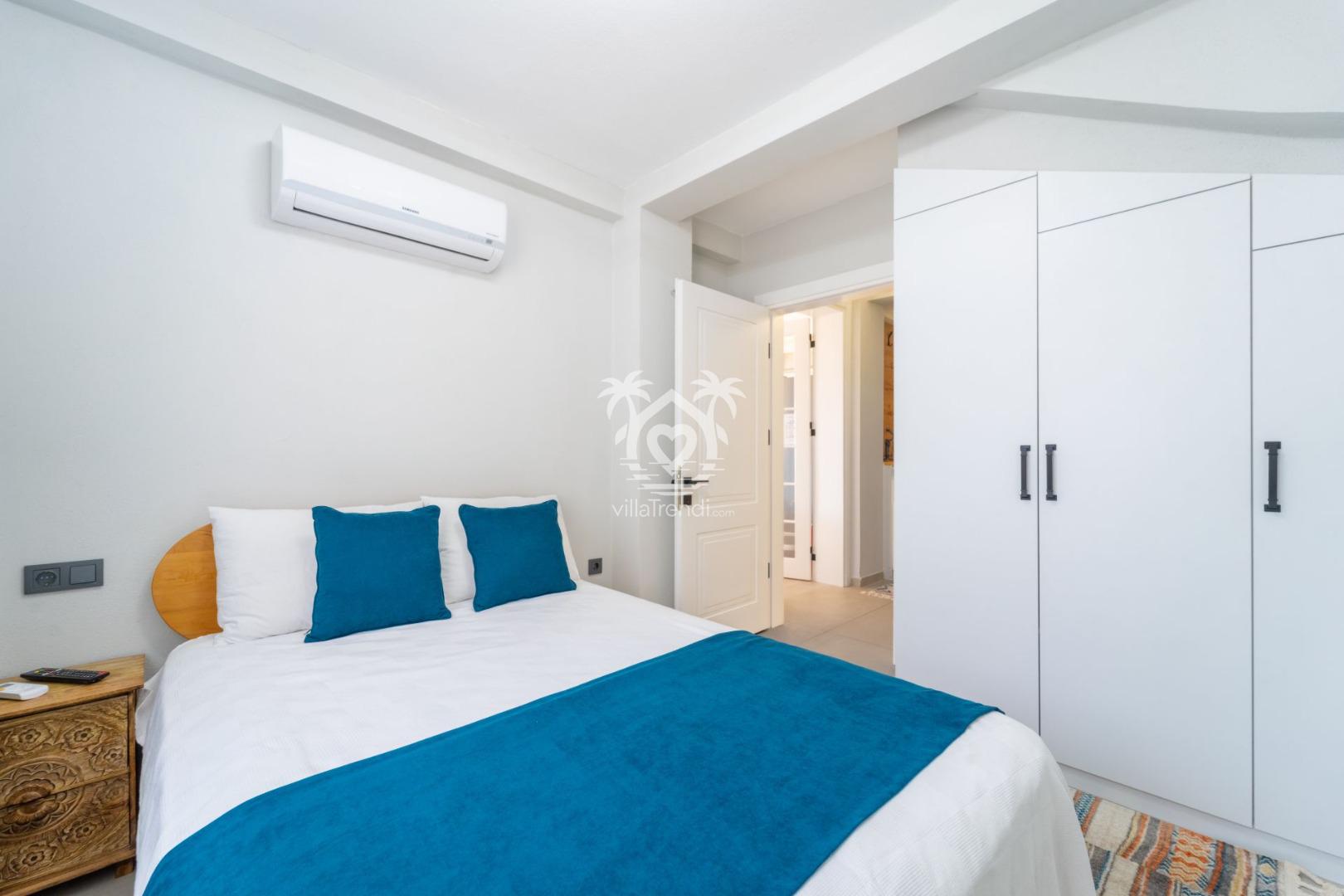 Süit Konaklama: Villamızdaki 3 yatak odasının ikisi ebeveyn banyolu olup, tüm odalarda klima ve televizyon konforu standarttır. 🛌📺