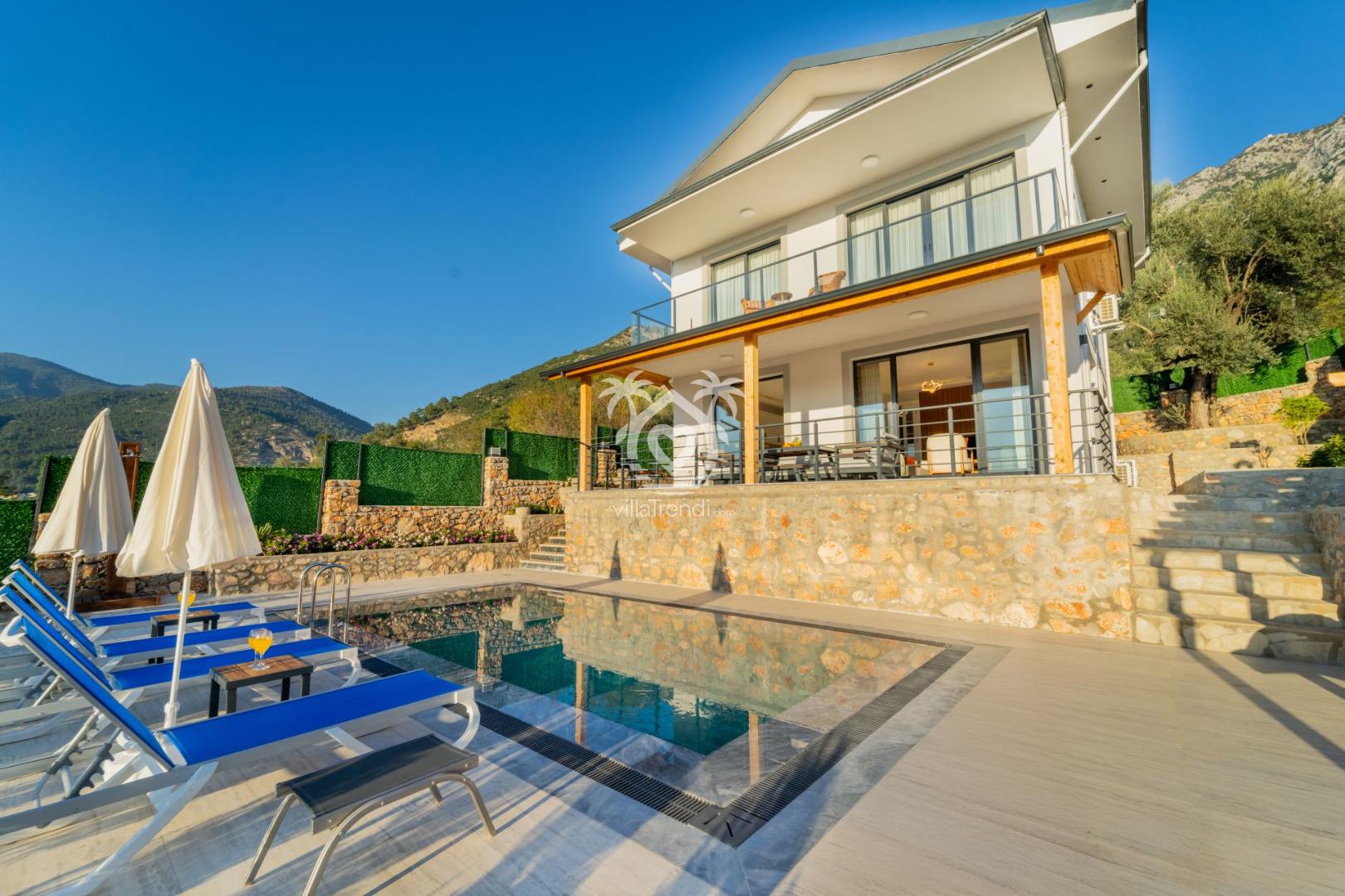 Fethiye'nin Yeşilüzümlü bölgesinde, doğanın kucağında huzurlu bir tatil vadeden Villa Sinemis, 8 kişilik konaklama kapasitesiyle geniş aileler ve arkadaş grupları için idealdir.