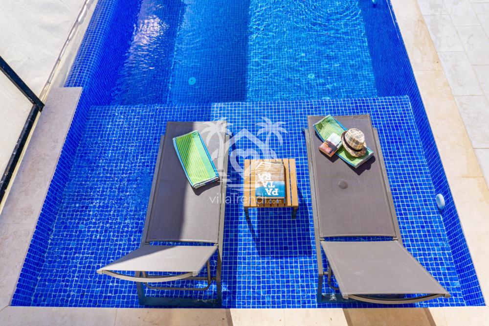 - Havuz: Özel yüzme havuzu (korunaklı olma ihtimali), havuz terası, şezlonglar, güneş şemsiyesi.
