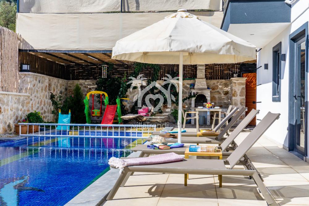 - Havuz: Özel yüzme havuzu (korunaklı olma ihtimali), havuz terası, şezlonglar, güneş şemsiyesi.