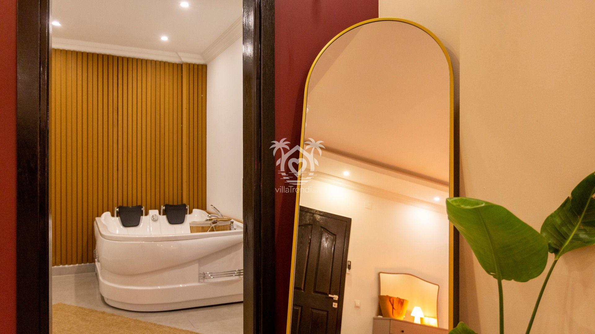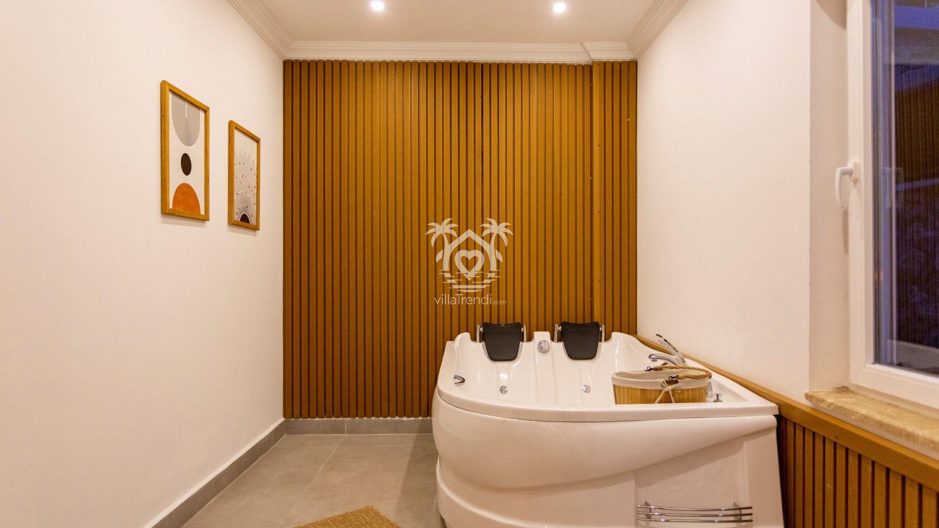 Villa Health'i diğer villalardan ayıran en belirgin özellik sunduğu su deneyimi. Açık yan olimpik yüzme havuzu sabah sporunu villanızın içinde mümkün kılarken jakuzi günün yorgunluğunu atmak için tam anlamıyla biçilmiş kaftan. Bu ikili kombinasyon Villa Health'i aktif ve dinlendirici bir tatil arayanlar için ideal kılıyor.