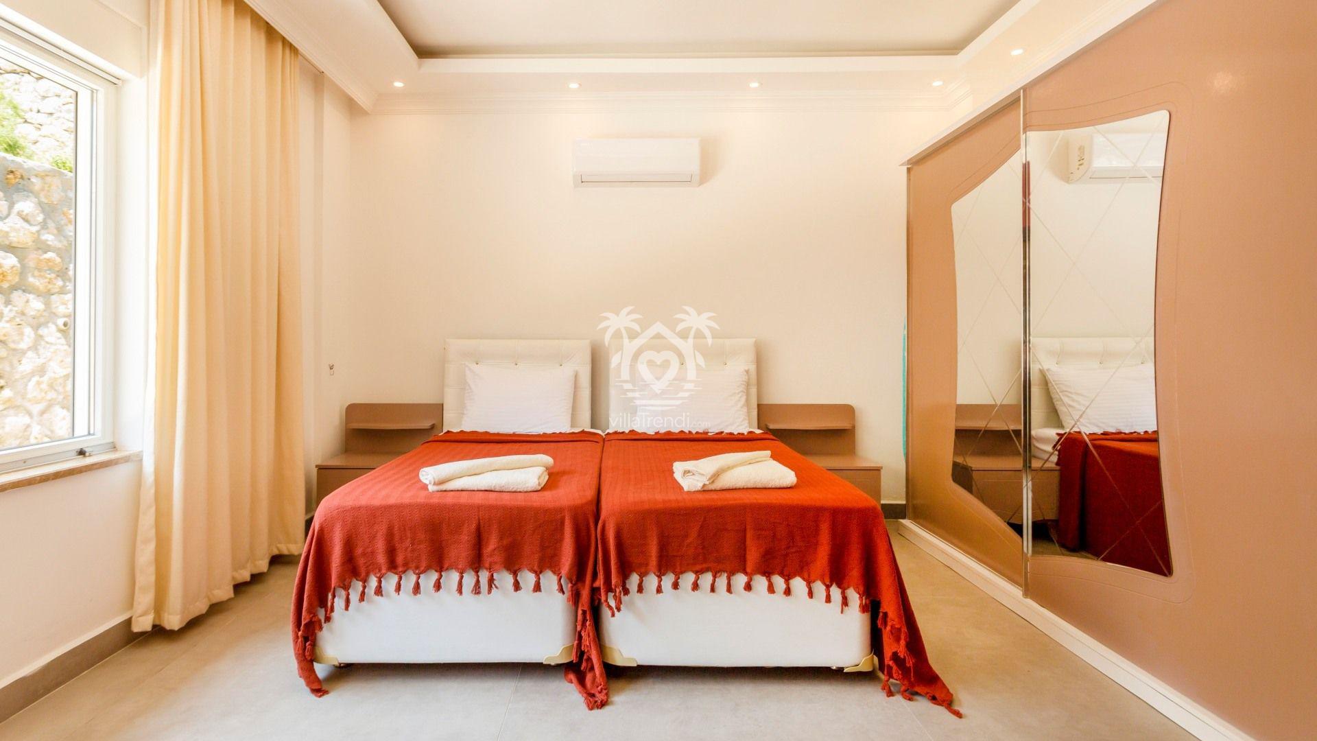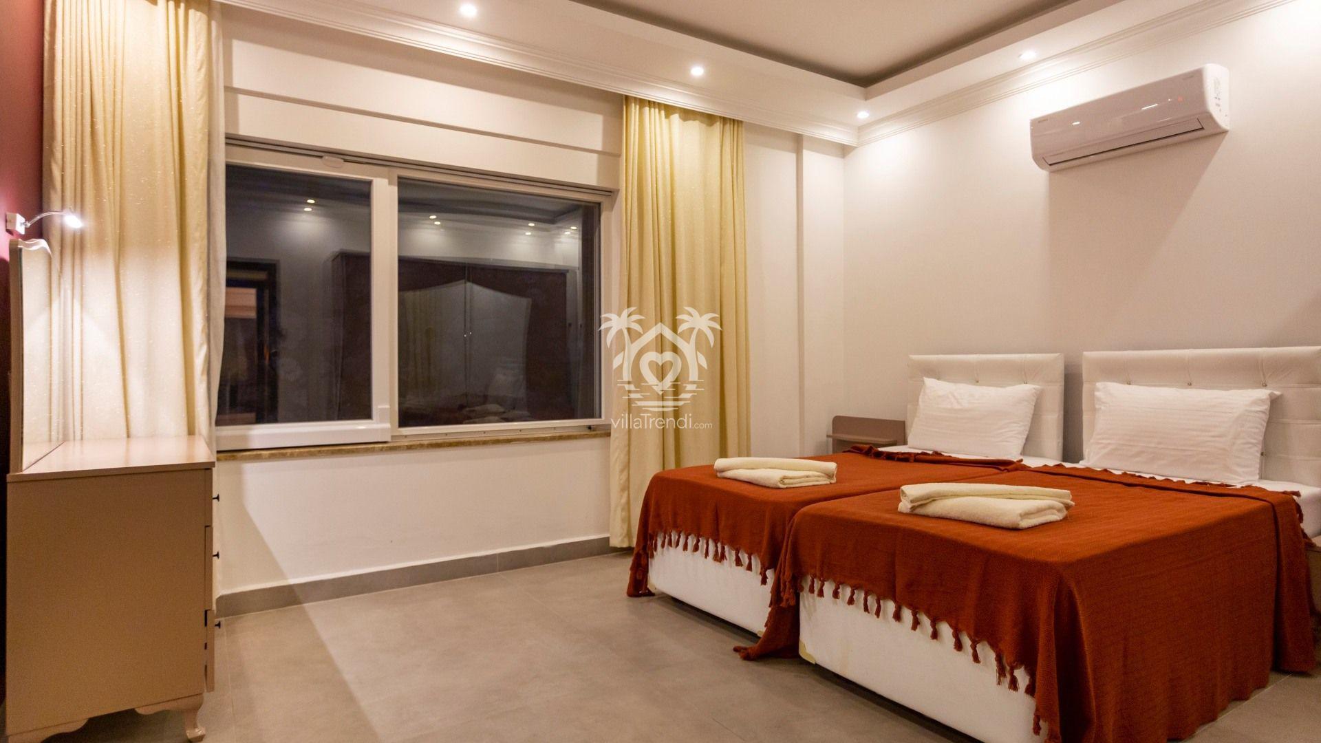 2 adet tek kişilik yatakla arkadaş grupları veya çocuklu aileler için pratik ve kullanışlı bir düzen sunuyor.