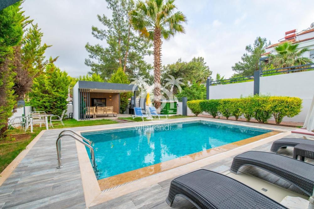 Bahçe : Özel yüzme havuzu, şezlong, güneş şemsiyesi, yemek -masa sandalyeleri, mangal