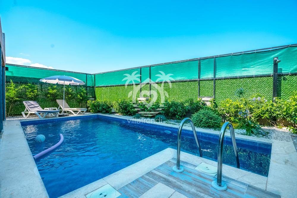 Villanın bahçesi muhteşem bir yeşil dokuyla kaplı. Bunun yanı sıra bahçe özel olarak kapatıldığı için korunaklı bir hizmet veriyor, Fethiye’de muhafazakâr lüks villa kiralamak isteyenlere de hitap ediyor.