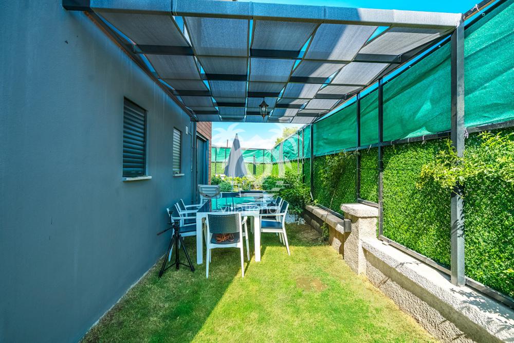 - Havuzun yanında üstü kapalı geniş çardak alanı ve oturma grubu