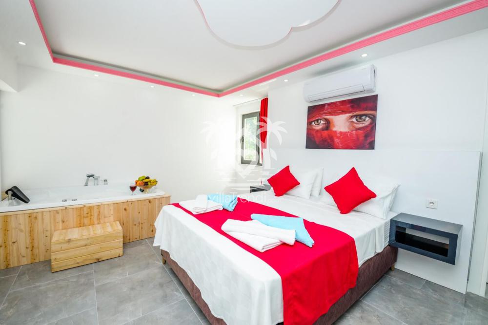 - 1. Yatak Odası (Suit Oda): Bir adet çift kişilik yatak, klima, komodin, giysi dolabı, rahatlatıcı bir jakuzi, makyaj masası ve özel banyo/tuvalet bulunmaktadır.