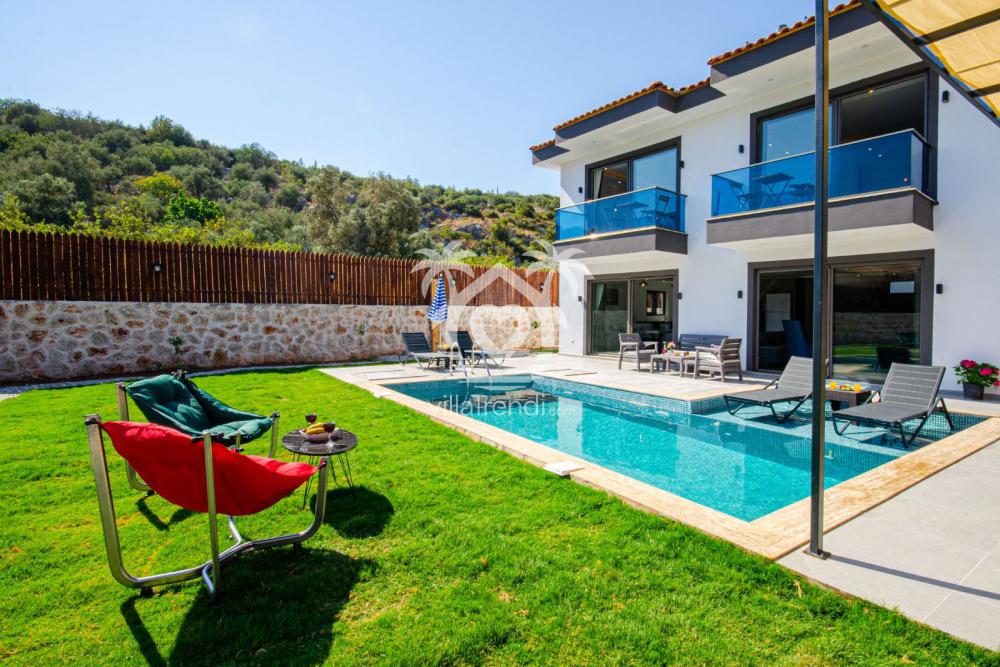 - Dış Mekan: Özel yüzme havuzu (büyüklüğü belirtilmemiş), bahçe (doğa manzaralı), havuz terası, şezlonglar, güneş şemsiyesi, oturma alanı ve/veya yemek masası (bahçede veya terasta, manzaralı olabilir), barbekü alanı (çoğu villada bulunur), özel otopark, Wi-Fi internet bağlantısı.
