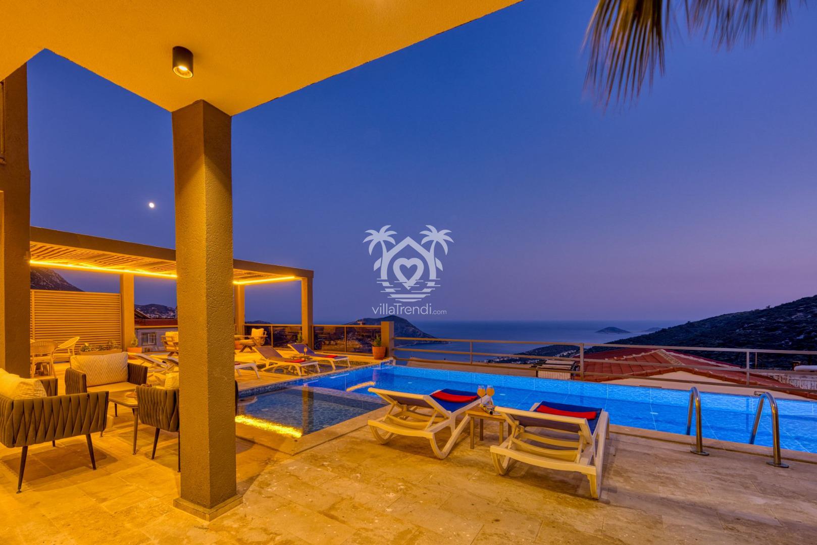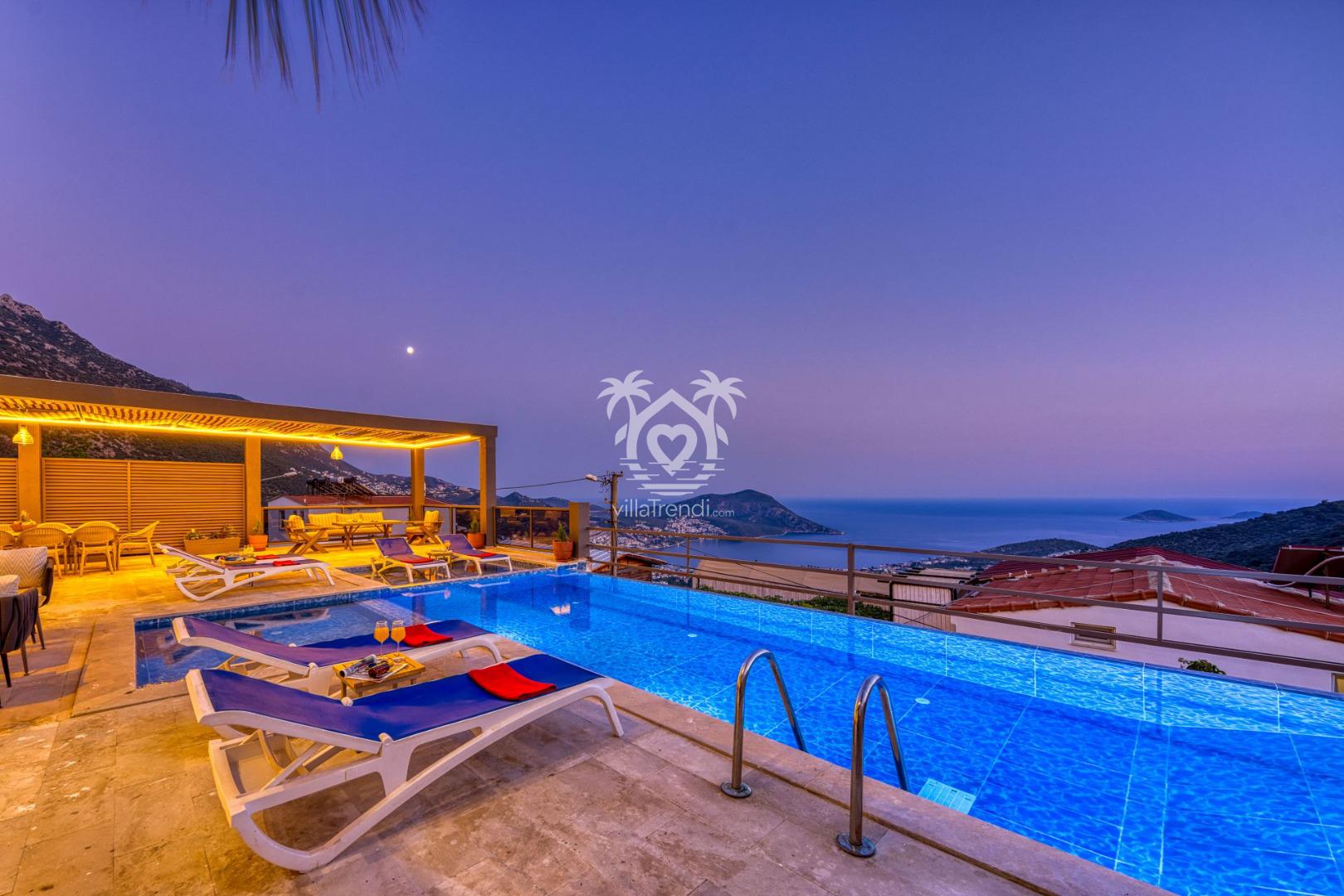 Villa Manavgatlı'nın en büyüleyici özelliği, sahip olduğu kuş bakışı Kalkan manzarası ve benzersiz gün batımı deneyimidir.