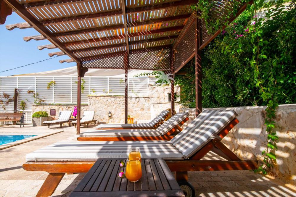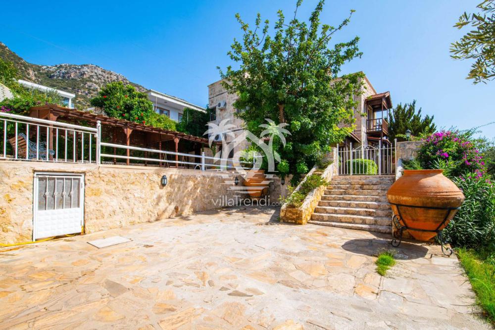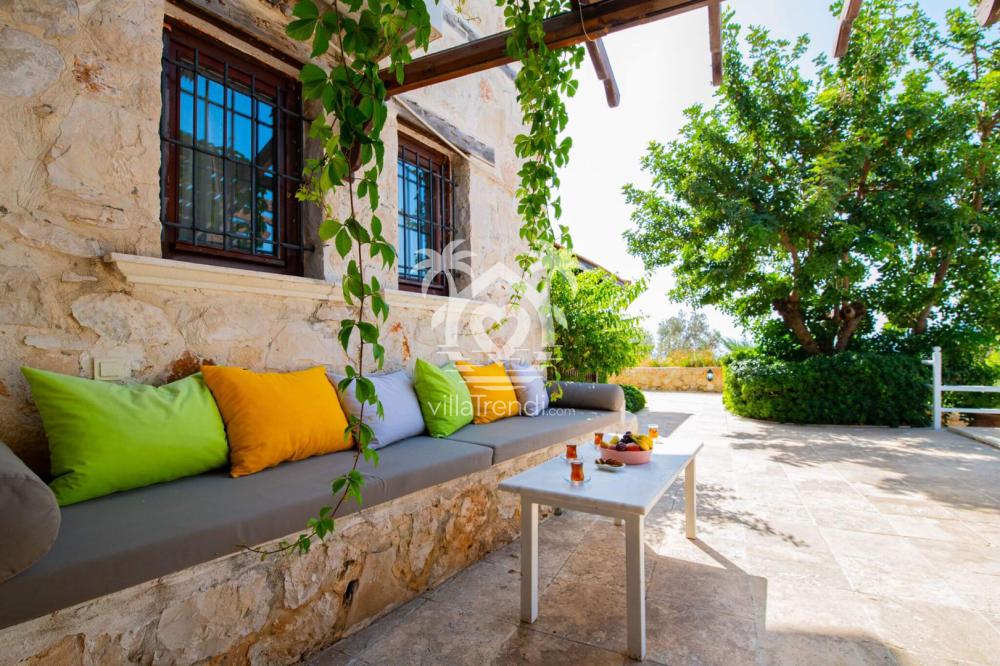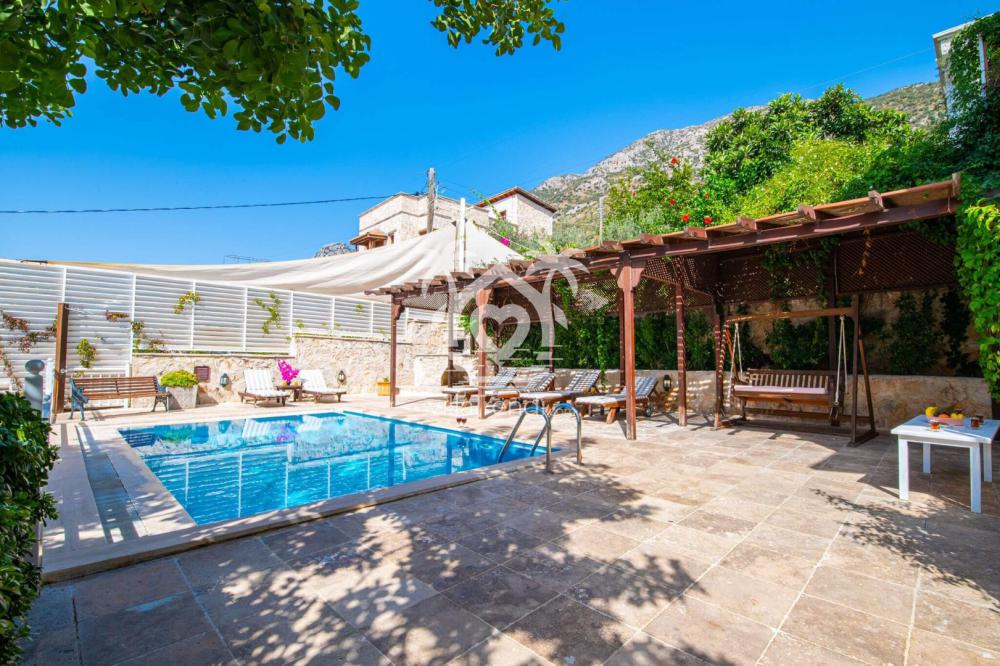 Kalkan’ın popüler tatil villalarından birinde konaklamaya hazır mısınız? Villa taş bina görünümlü doğal bir mimariye sahip. Bahçesindeki havuzu ve şezlong bölümüyle tam bir keyif davetinde bulunuyor. Yüzme havuzunun serin sularında ferahlarken üstü kapalı şezlong bölümünde gölgenin keyfini çıkarabilir ya da güneşlenme bölümünde bronzlaşabilirsiniz.