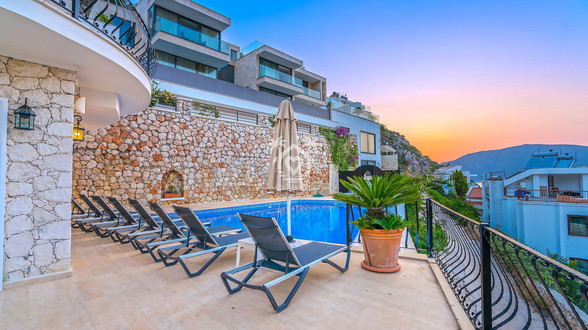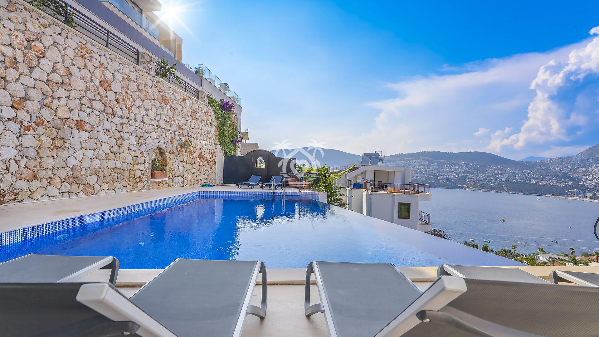 Villa Uğurlu Kışla :Kalkan'da deniz manzaralı, modern tasarımlı lüks villa: özel havuz, geniş bahçe, konforlu odalar ve güvenilir hizmet sunar.