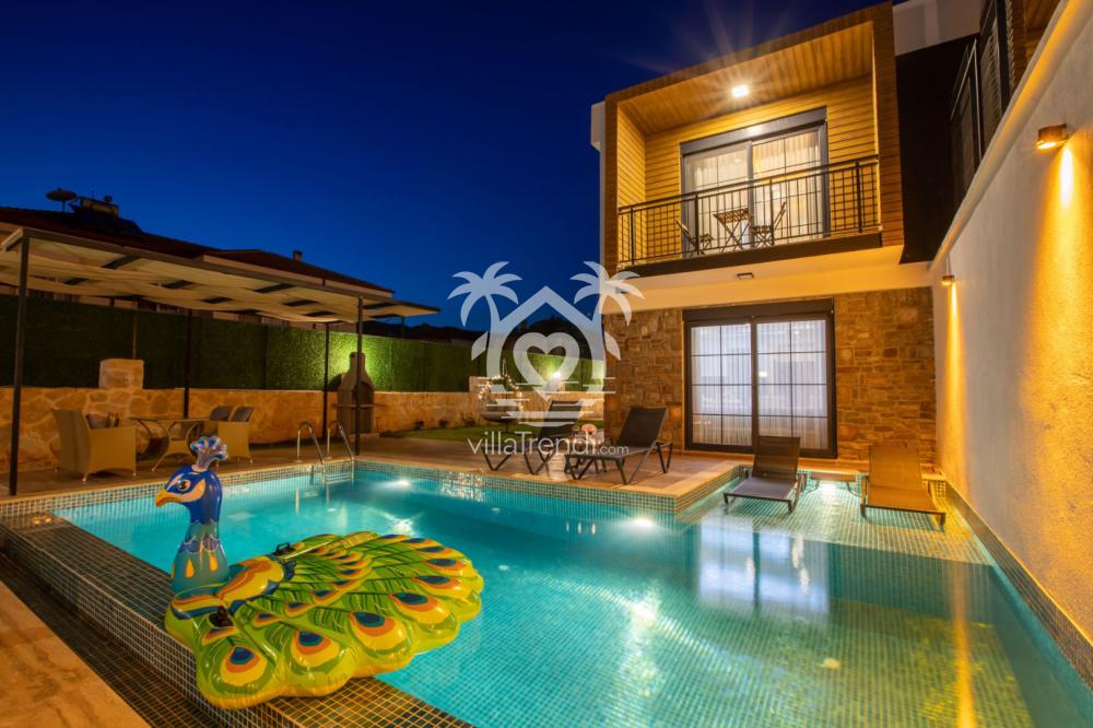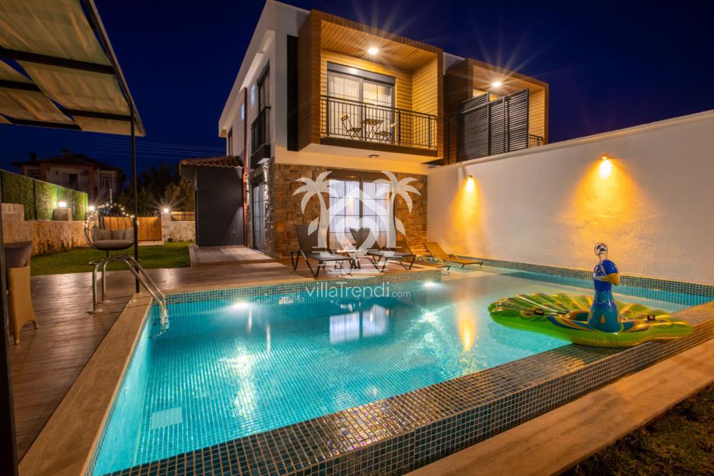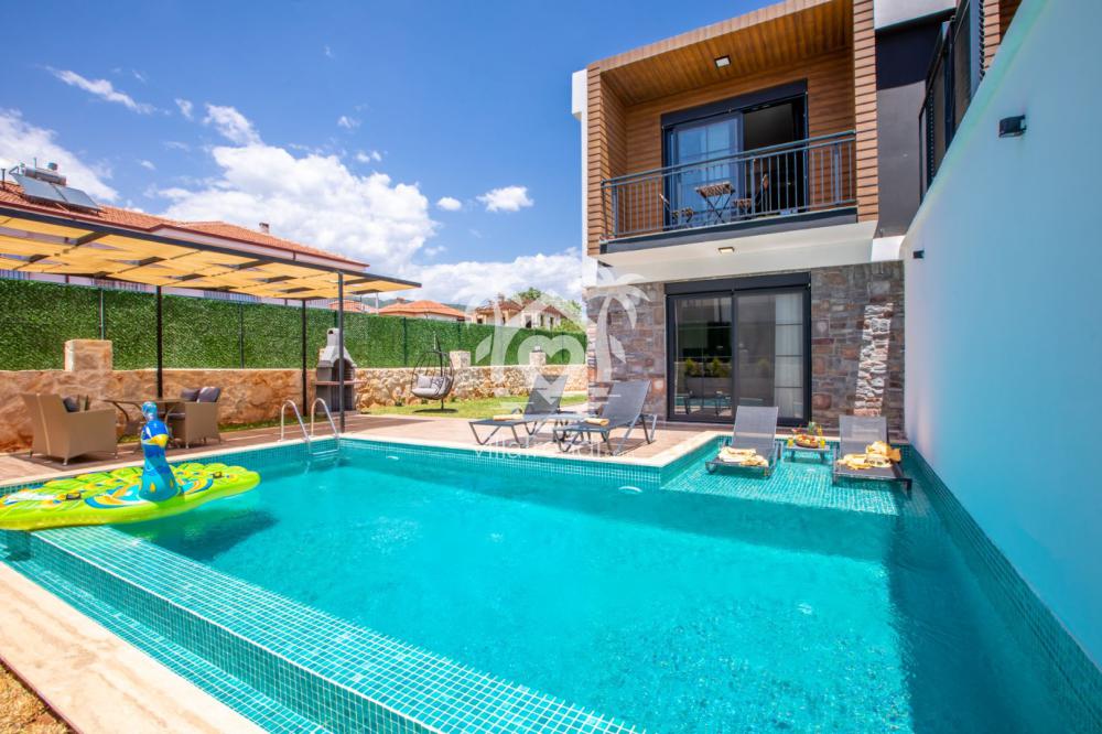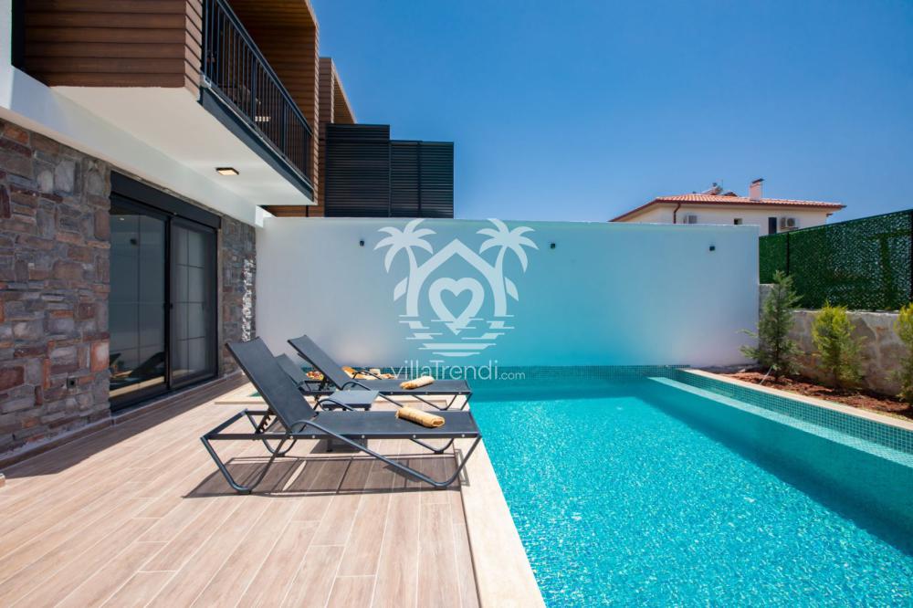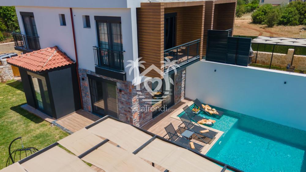 - Dış Mekan: Özel yüzme havuzu (büyüklüğü belirtilmemiş), bahçe (doğa manzaralı), havuz terası, şezlonglar, güneş şemsiyesi, oturma alanı ve/veya yemek masası (terasta, manzaralı olabilir), barbekü alanı (çoğu villada bulunur), özel otopark, Wi-Fi internet bağlantısı.