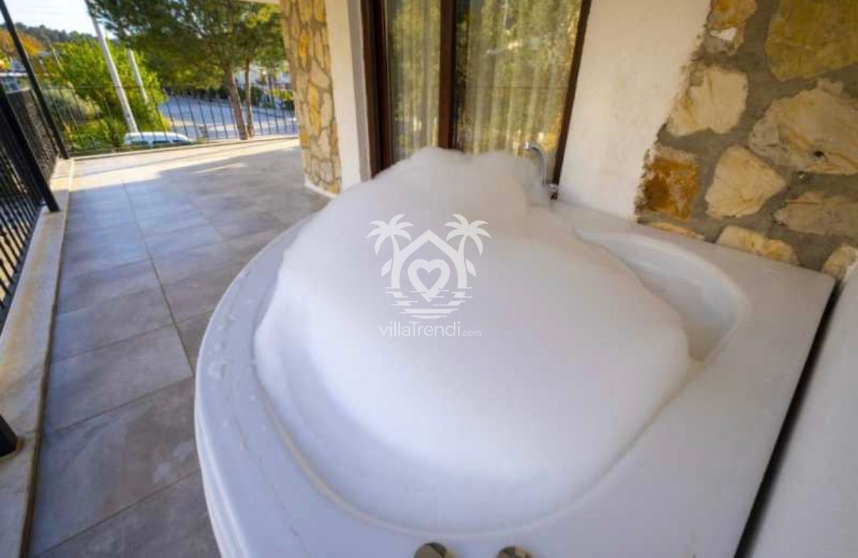 Süit Konaklama: Villamızda yer alan 5 yatak odasının 4’ü ebeveyn banyolu olup, tatiliniz boyunca size maksimum mahremiyet sağlar. Master yatak odasında bulunan özel jakuzi, günün yorgunluğunu atmanız için sizi bekliyor. 🛁✨