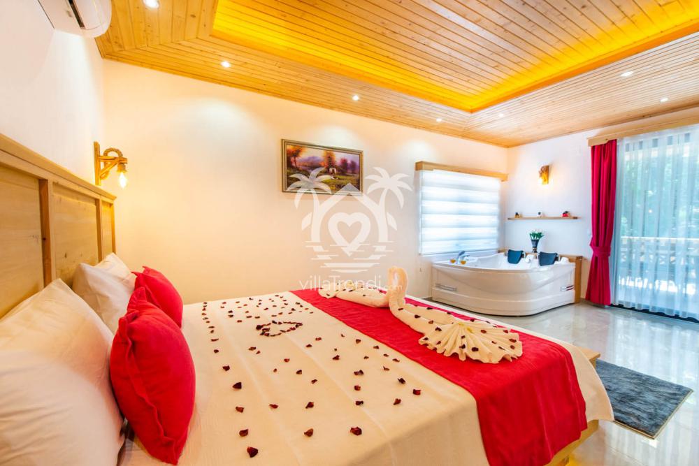 Villa Narya seçeneği, toplam dört kişilik kapasitesi ve üç yatakla farklı gruplara hitap eder. Birinci yatak odası çift kişilik yatak, jakuzi ve klima içerir. Ayrıca ikinci yatak odası iki tek kişilik yatak ve en-suite banyo sunar. Ekibimiz, tüm alanları özenle tasarlayarak herkesin rahat bir ortamda konaklamasını sağlar. Dahası, Amerikan mutfak ankastre fırın, bulaşık makinesi, çamaşır makinesi ve su ısıtıcısı gibi donanımlara sahiptir. Bu sayede günlük villa kiralama beklentisini eksiksiz karşılar. Salon bölümündeki oturma grubu, TV ve kablosuz internet bağlantısı ise ev konforunu tatil anlarınıza taşır.