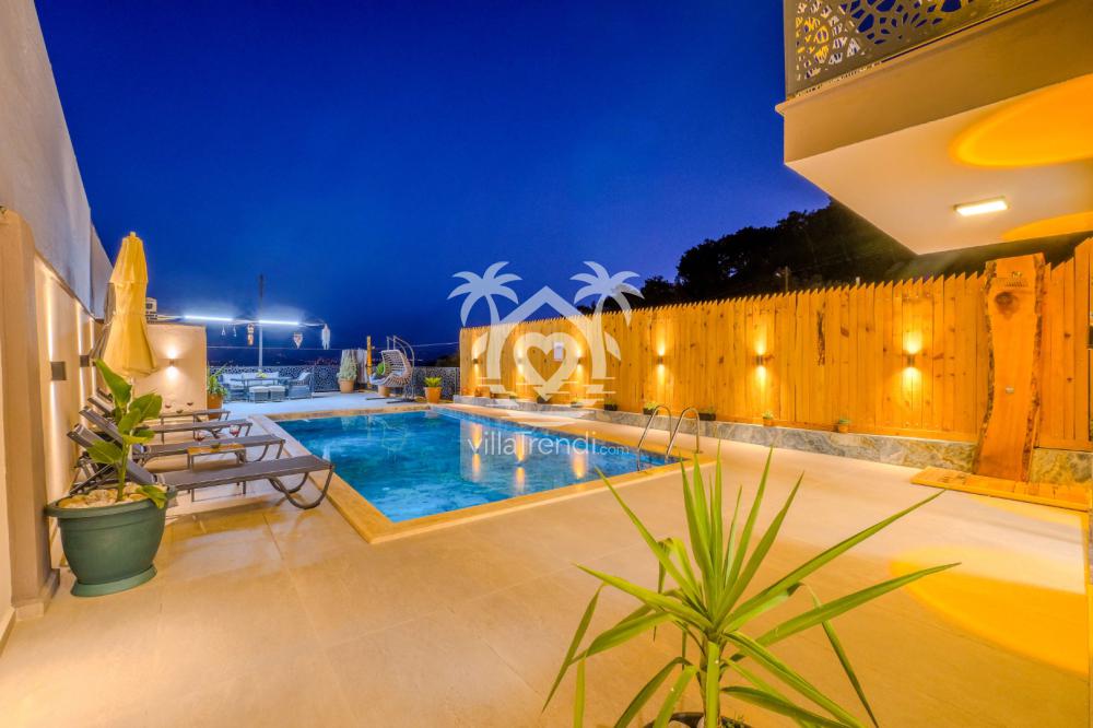 - Özel Bahçe: Güneşlenme terası, özel yüzme havuzu, şezlong, güneş şemsiyesi, çift kişilik salıncak, yemek masası & sandalyeleri, bahçe oturma grubu ve taş barbekü
