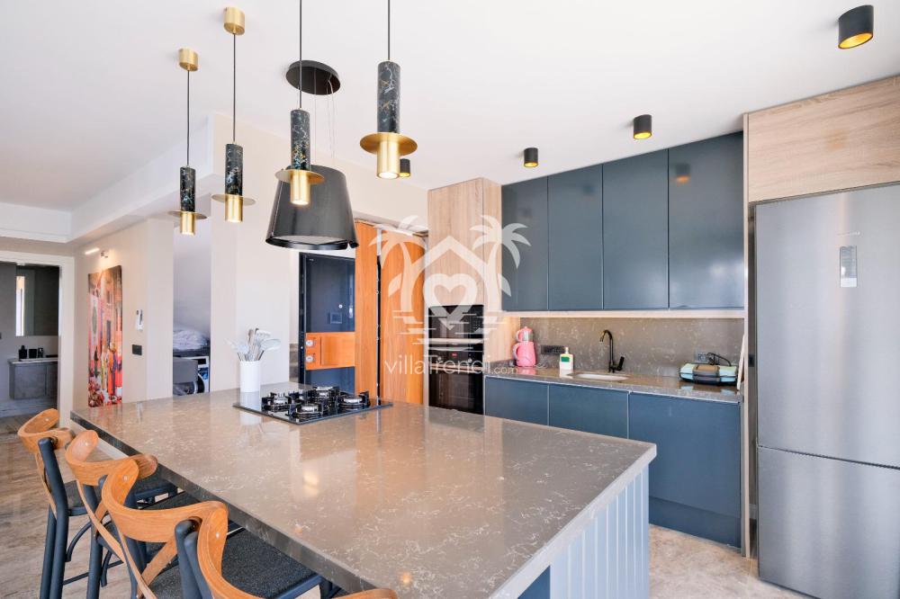 Açık mutfak konseptiyle tasarlanan villamızda, modern ve şık detaylar ön plandadır. Mutfak adası, buzdolabı, bulaşık makinesi, 4’lü ocak, ankastre fırın, mikrodalga, tost makinesi ve filtre kahve makinesi ile donatılmıştır. Ayrıca, eksiksiz bir yemek takımı ve tatiliniz boyunca ihtiyaç duyacağınız tüm mutfak malzemeleri Villa Trendi farkıyla hizmetinizdedir.