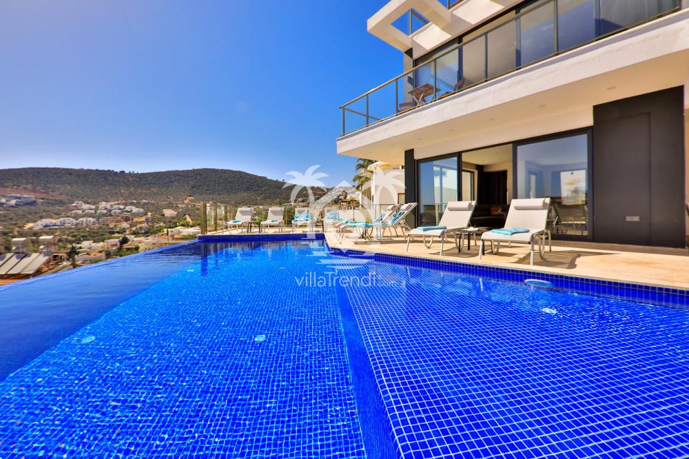 Lüks ve konforun iç içe geçtiği villa sonsuzluk havuzuyla büyülüyor; deniz, dağ, şehir manzaralarıyla nefes kesiyor. Lüksü ve huzuru keşfedeceğiniz villayı cazip fiyat avantajıyla Villa Trendi’nden hemen kiralayabilirsiniz.