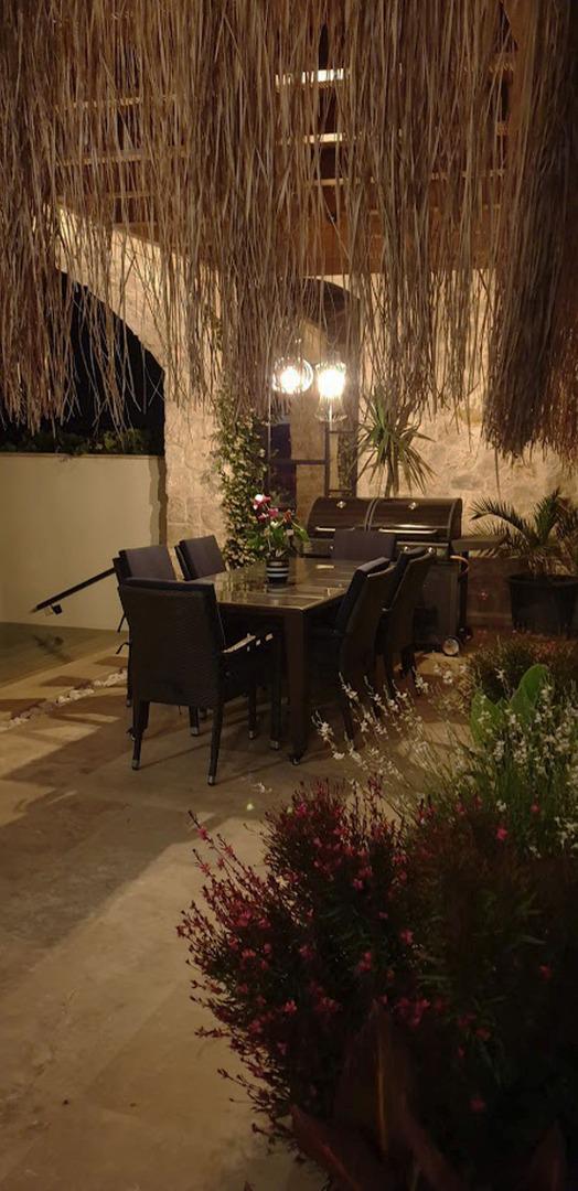 Dış Mekan Keyfi: Modern oturma grupları, konforlu şezlonglar ve yıldızların altında ziyafetler için şık bir barbekü köşesi. 🥩🌌