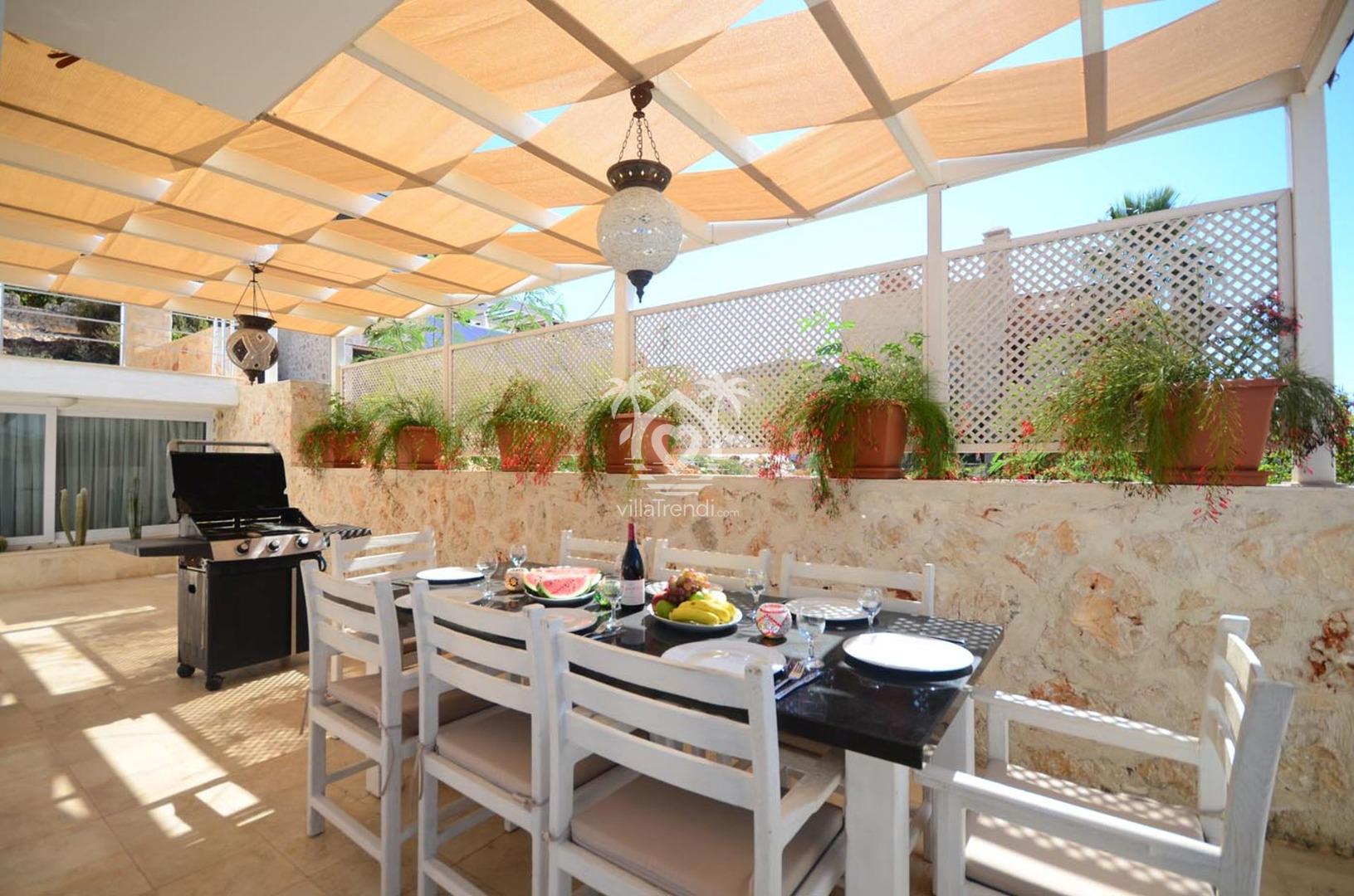Al Fresco Yaşam: Akşam yemeklerinizi yıldızların altında yiyebileceğiniz geniş yemek masası, keyifli barbekü ziyafetleri için taş barbekü alanı ve dostça rekabet için masa tenisi mevcuttur. Bahçe ve havuz bakımı, tatiliniz boyunca her gün görevliler tarafından titizlikle yapılır.