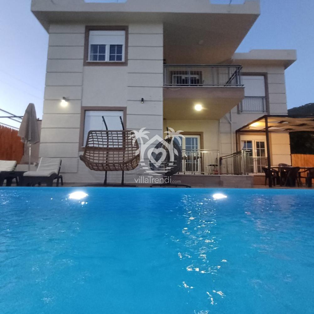 Villa Barış İkizce, dağ ve deniz manzarası eşliğinde modern konfor sunar. Erken rezervasyonla unutulmaz tatil anları sizi bekler.