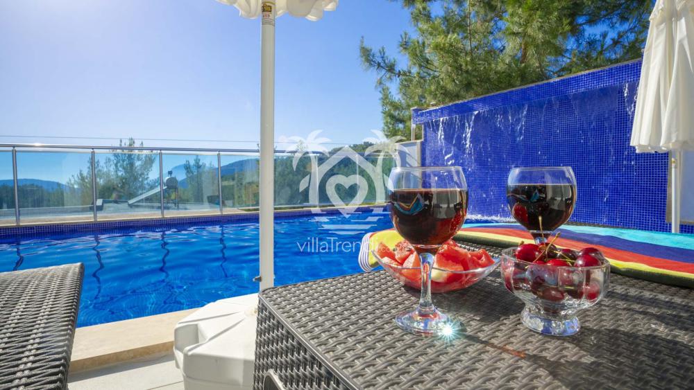 Antalya'nın gözde tatil beldesi Kaş'ın Kalkan ilçesine bağlı Akbel mevkiinde konumlanan Villa Saray, doğanın kalbinde huzurlu bir tatil vadediyor. 4 kişiye kadar konaklama imkanı sunan bu özel villa, 2 yatak odasıyla balayı çiftleri ve çekirdek aileler için ideal bir sığınak niteliğinde. Doğanın eşsiz manzarasına hakim bir konumda yer alan villanın korunaklı havuz terası, misafirlerine mahremiyet içinde dinlenme fırsatı sunuyor. Ayrıca villada bulunan sinema salonu, tatilinize keyifli bir eğlence katıyor (sinema salonunu kullanmak isteyen misafirlerin yanlarında dizüstü bilgisayarlarını getirmeleri gerekmektedir).