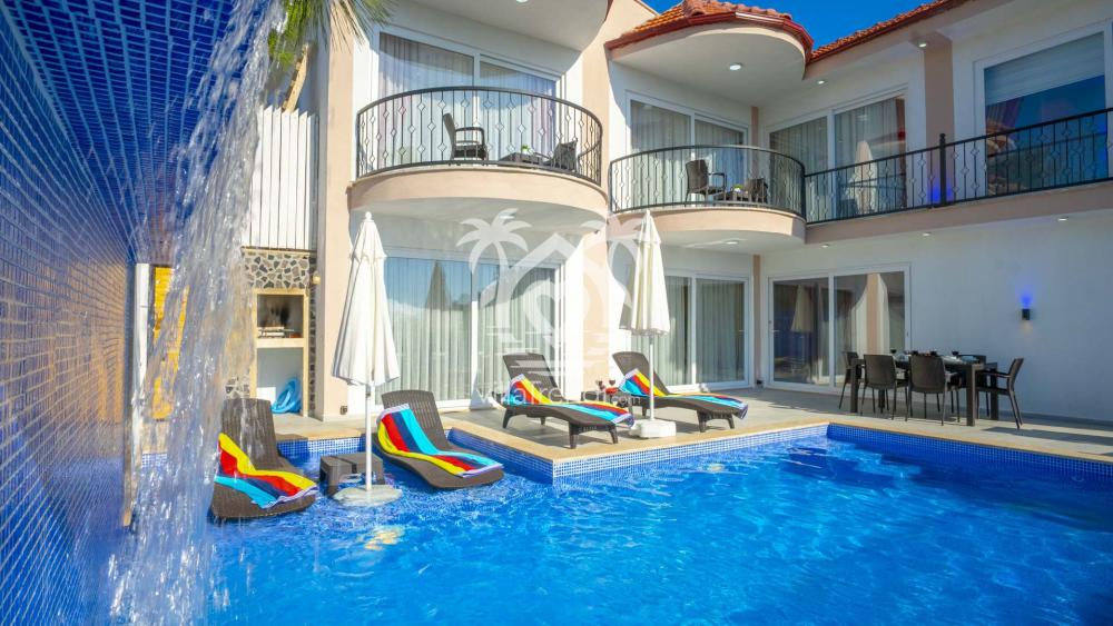 Denize sıfır özelliğiyle villadan çok malikane ihtişamına sahip olan Villa Kalkan Zümrüt, tam 10 kişilik misafir kapasitesiyle geniş ailelere ve arkadaş gruplarına aradıkları konforu sunuyor