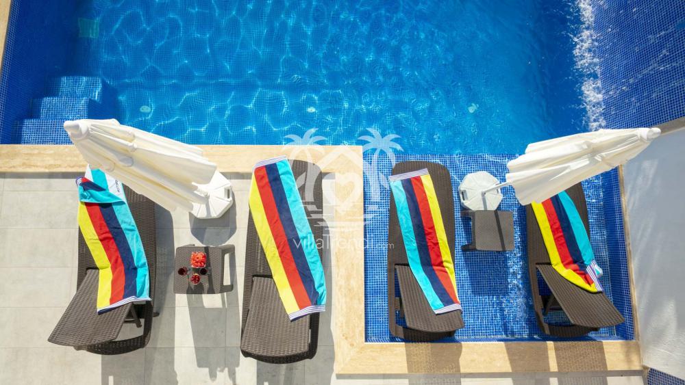 - Korunaklı havuz terası, mahremiyet içinde güneşlenme ve dinlenme imkanı.