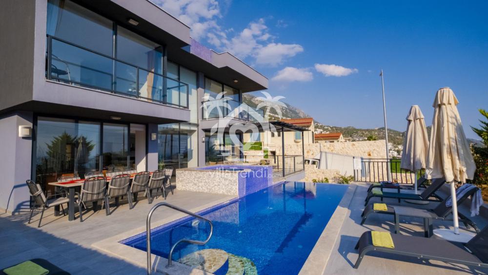 - Dış Mekan: Özel sonsuzluk yüzme havuzu, geniş havuz terası, şezlonglar, güneş şemsiyesi, barbekü alanı, yemek masası, oturma alanı, özel bahçe, otopark, Wi-Fi internet bağlantısı.