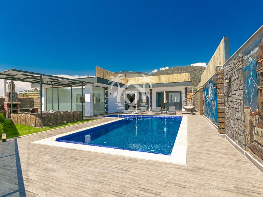 - Dış Mekan: Özel yüzme havuzu (korunaklı), geniş bahçe, havuz terası, şezlonglar, güneş şemsiyesi, oturma alanı ve/veya yemek masası (terasta, manzaralı olabilir), barbekü alanı (çoğu villada bulunur), özel otopark, Wi-Fi internet bağlantısı.