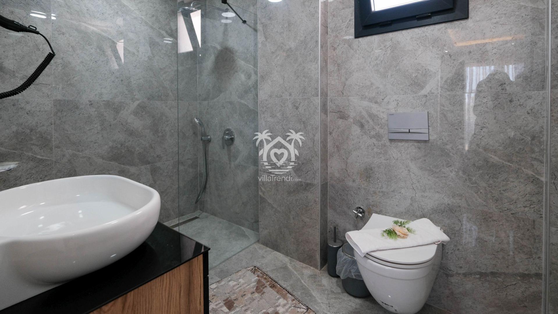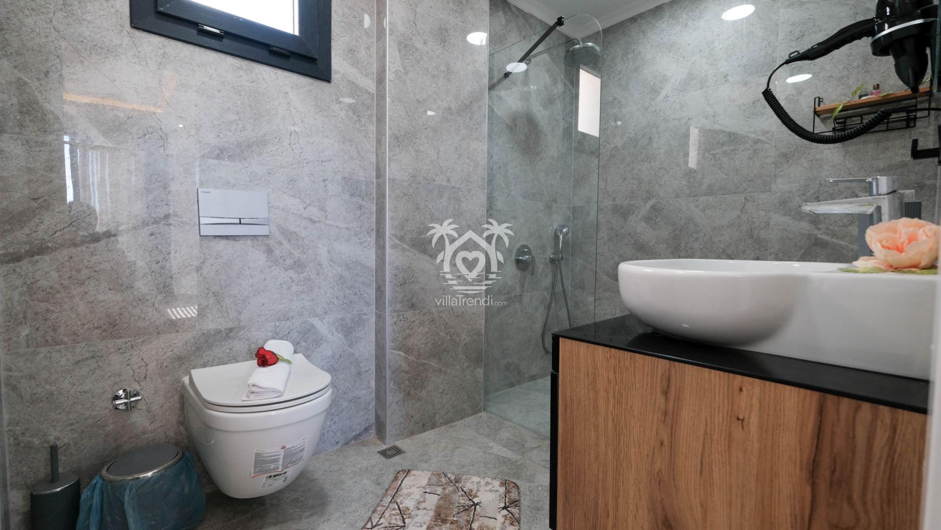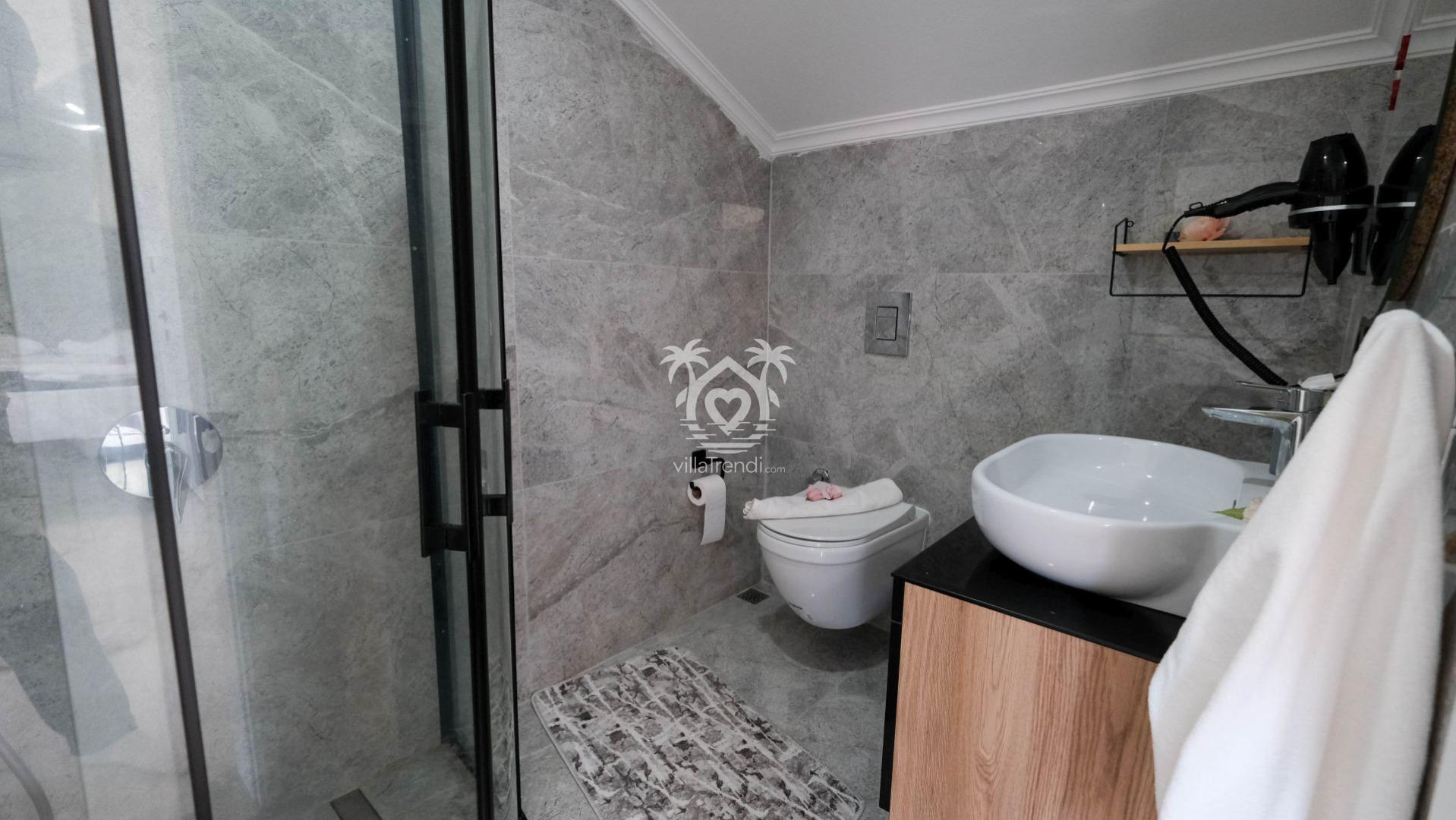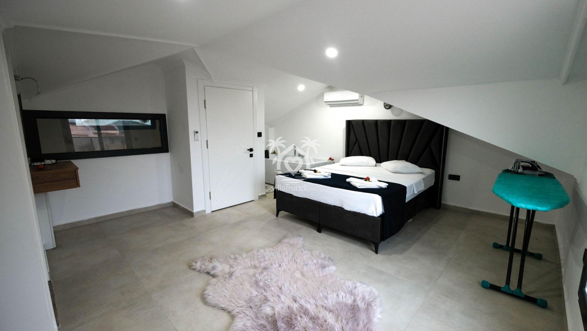 Villamızın tüm yatak odaları, misafirlerimizin en üst düzey konforda konaklaması için süit (banyolu) olarak tasarlanmıştır: