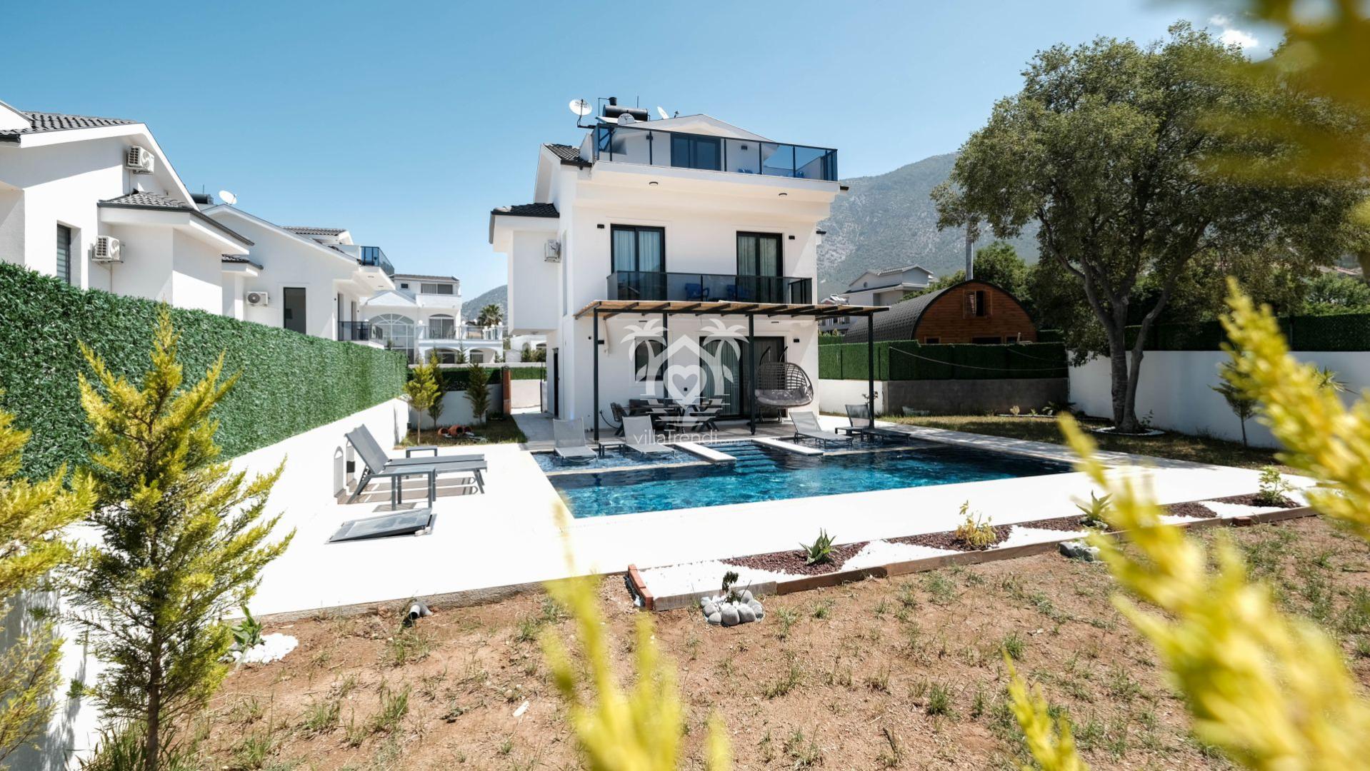 Villa Cappucino eşsiz mimarisi ve geniş yaşam alanlarıyla Fethiye’nin Ovacık Mahallesinde yer alıyor.