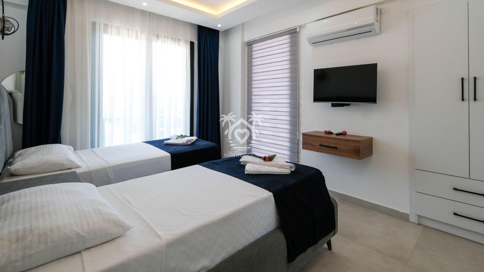 2. Yatak Odası: İki adet tek kişilik yatak, TV, klima, balkon ve ebeveyn banyosu. 💤📺