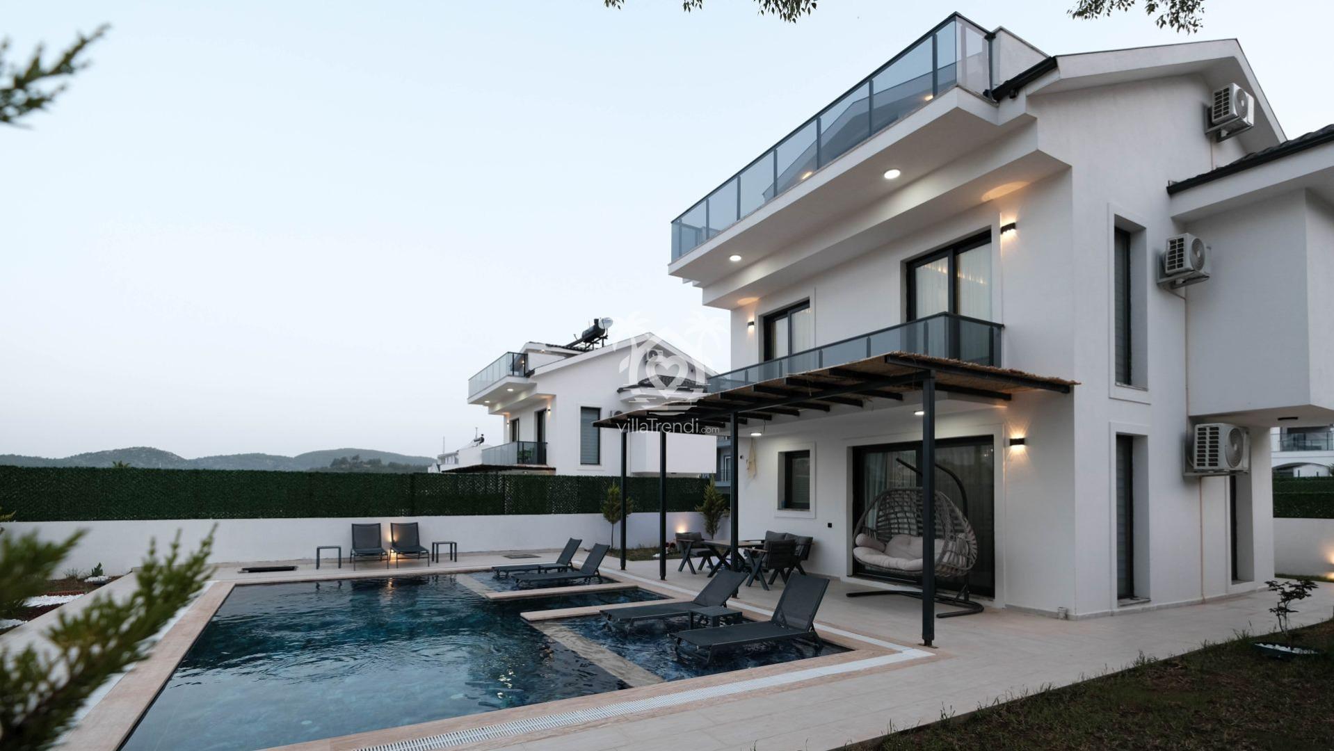 Villa Tahancı Duo, Fethiye'nin gözde tatil beldesi Ovacık'ta konumlanmış, 3 yatak odası ve 6 kişilik konaklama kapasitesiyle öne çıkan, özel jakuzili bir kiralık villadır.