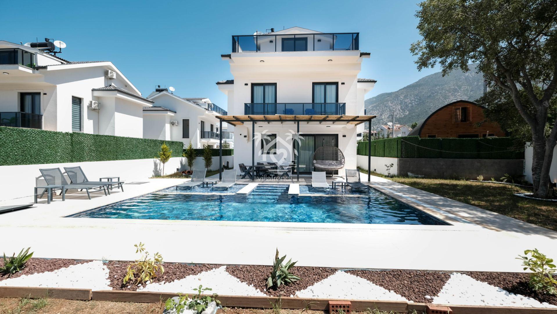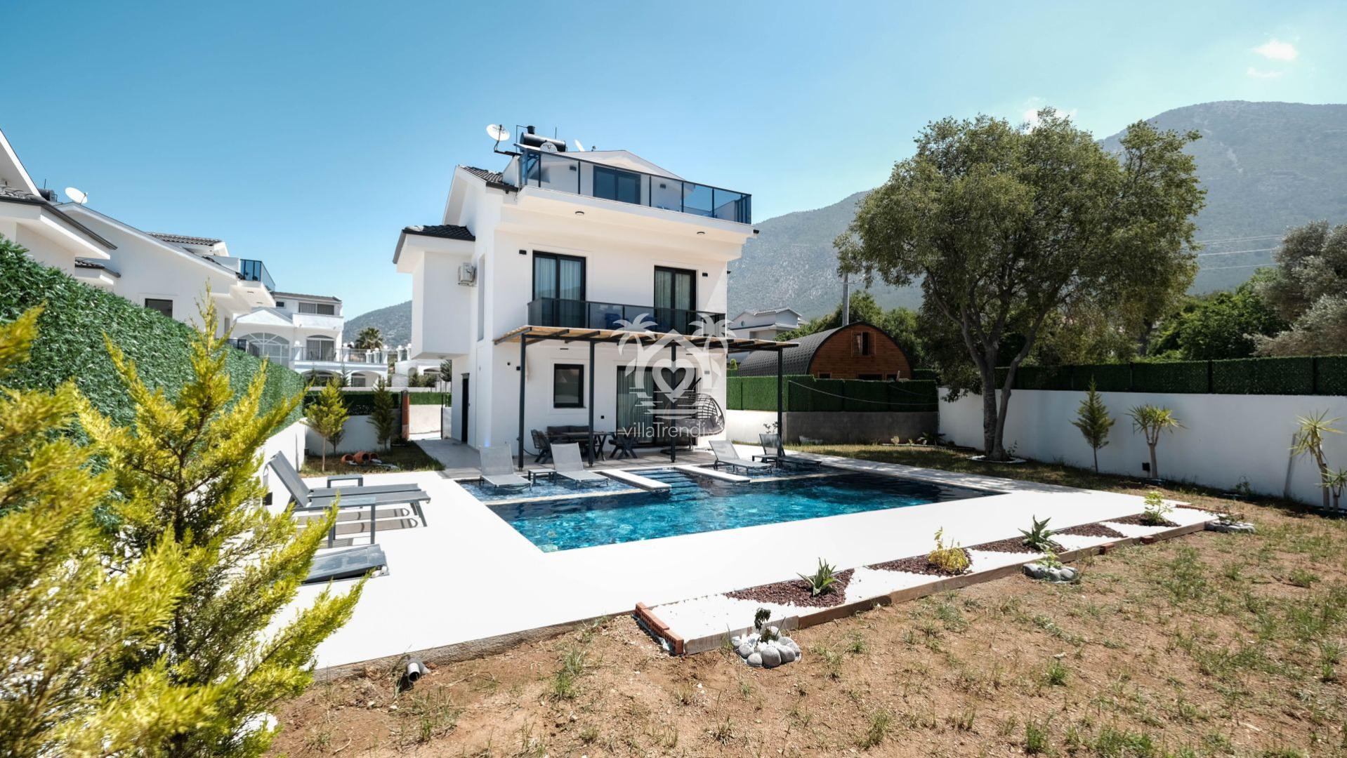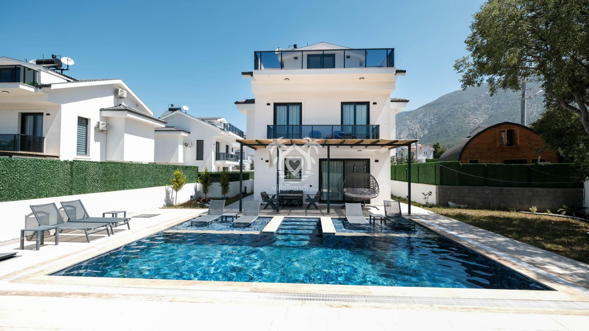 Villa Cappucino eşsiz mimarisi ve geniş yaşam alanlarıyla Fethiye’nin Ovacık Mahallesinde yer alıyor.