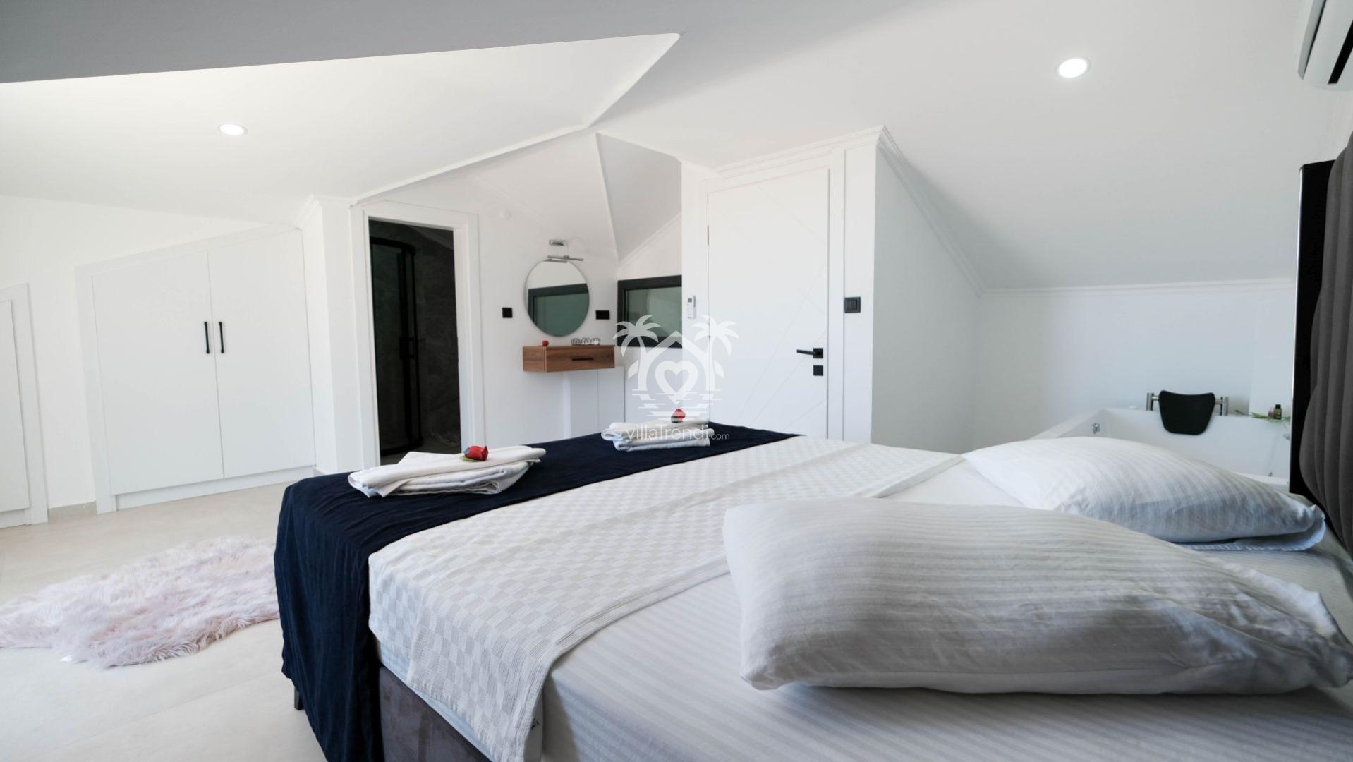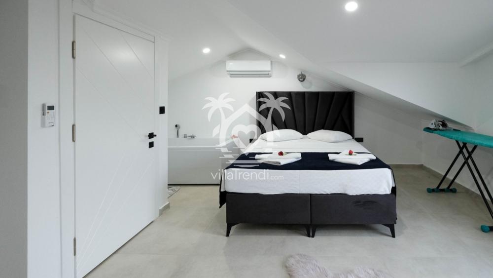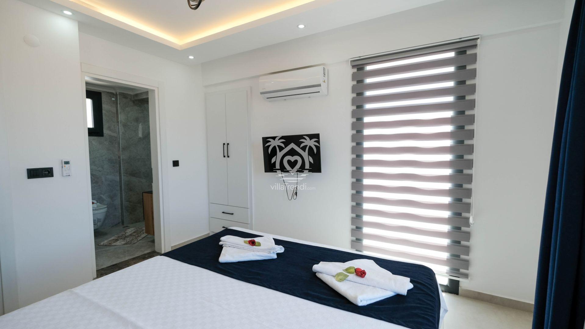 Villamızın tüm yatak odaları, misafirlerimizin mahremiyeti ve rahatlığı için ebeveyn banyolu olarak tasarlanmıştır: