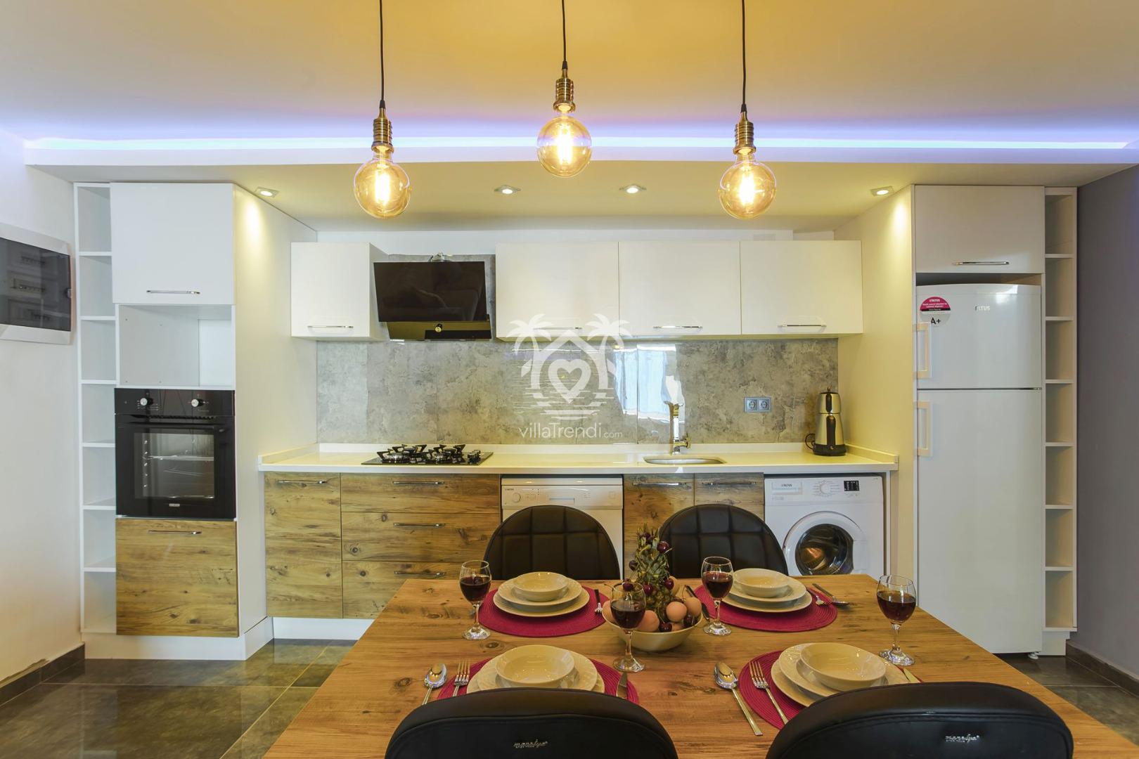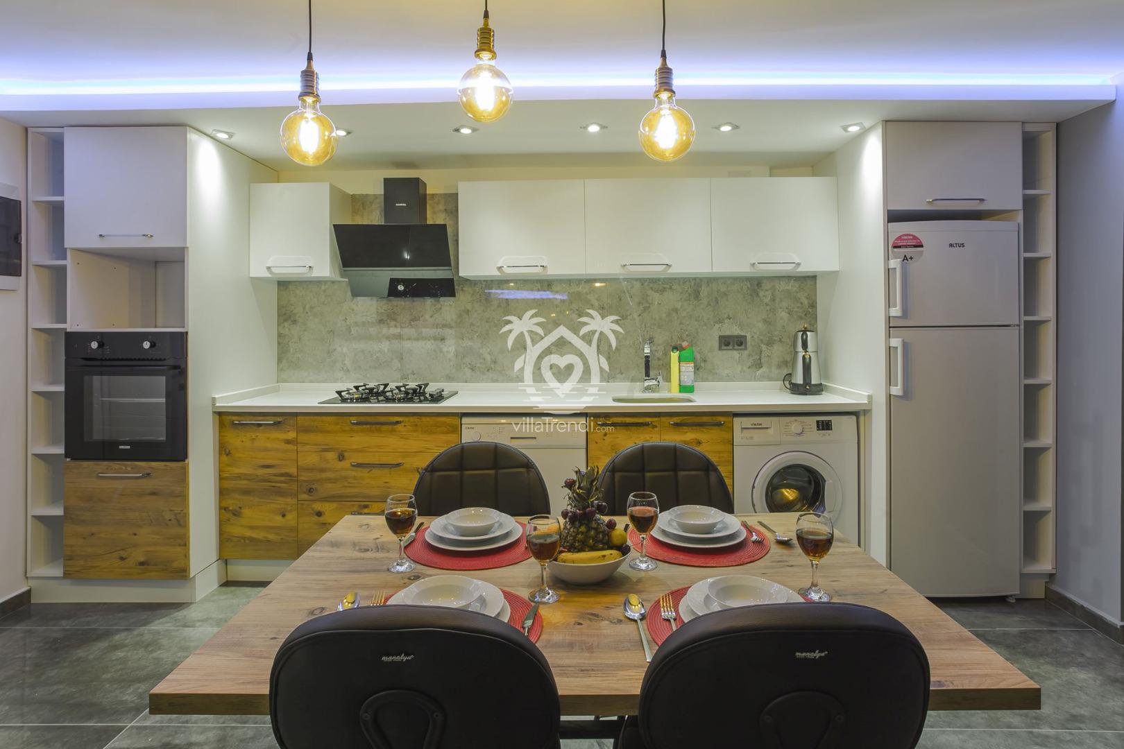 Amerikan Mutfak: Bulaşık makinesinden çay makinesine, ankastre ocaktan 4 kişilik yemek takımına kadar tüm mutfak ekipmanları eksiksizdir. 🍳☕