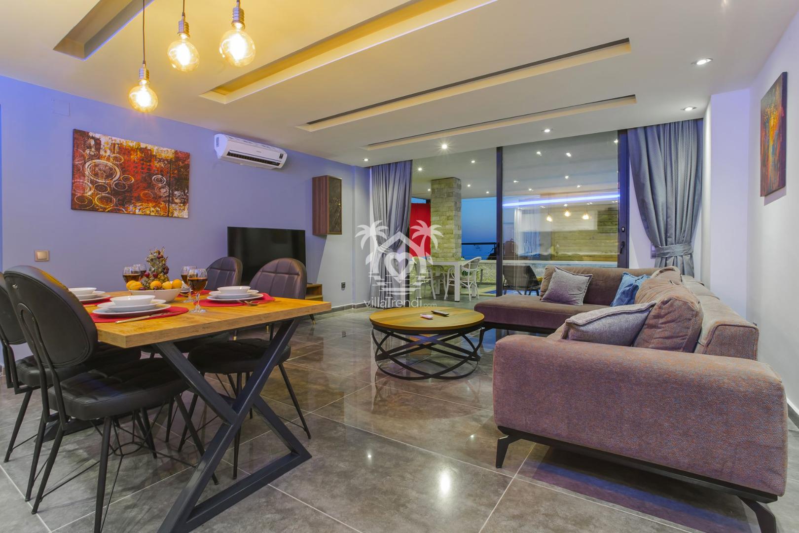 Deniz manzaralı Villa Sunshine, 6 kişilik geniş konaklama kapasitesiyle Kalkan’da, Kördere’de yer alıyor.