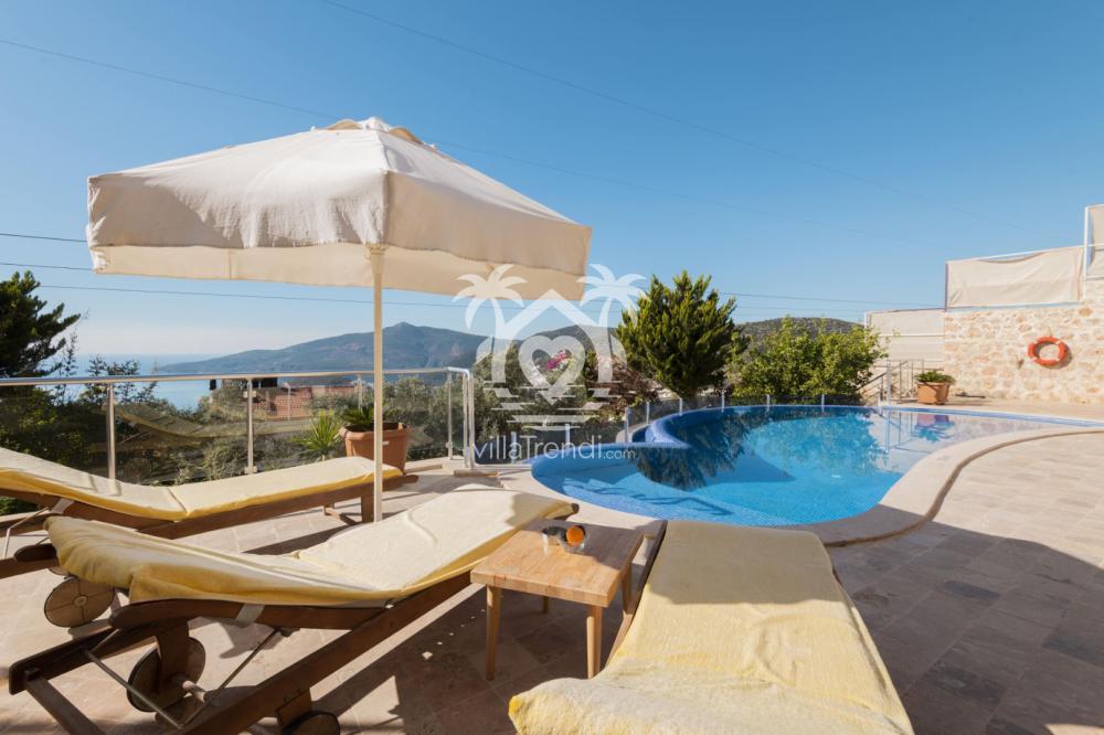 Antalya'nın turistik ilçesi Kalkan'da muhteşem deniz manzarasına sahip Kördere'de yer alan Villa Sunrise, altı kişilik bir konaklama imkânı sunuyor.