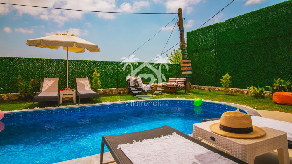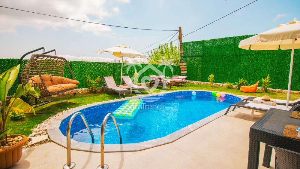 - Özel ve Keyifli Havuz Deneyimi: Geniş özel havuz, misafirlerin serinlemesi ve eğlenceli vakit geçirmesi için idealdir. Havuz kenarındaki şezlonglar ve oturma alanı ise rahatlama ve güneşlenme imkanı sunar.