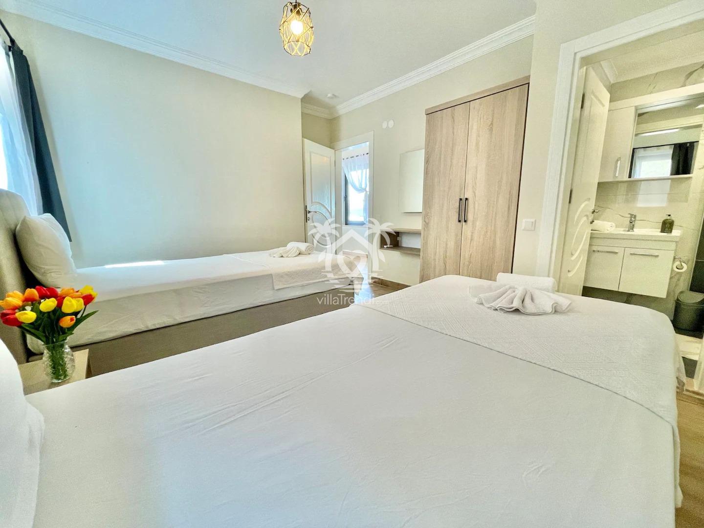Ebeveyn Banyolu Odalar: Tüm yatak odalarımızda klima ve odaya özel şık bir banyo/WC mevcuttur. 🛀❄️