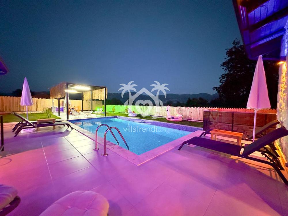Doğa manzaralı bahçesinde yer alan özel yüzme havuzu, ferah bir ortamda serinleme fırsatı sunar. Üstelik, dikdörtgen tasarımı ve 8 metreye 3,5 metrelik ölçüleri sayesinde rahatça yüzebilirsiniz. Derinliği 1,5 metre olan bu alanda çocuk havuzu bulunmaz; ancak çevredeki korunaklı bahçe, güvenilir villa kiralama beklentisini karşılar. Şezlonglar, şemsiyeler ve barbekü gibi detaylar, açık havada tatilin keyfini artırır. Bununla birlikte, jakuzi ve veranda gibi imkanlar konukların rahatlığı için düşünülmüştür. Böylece, havuzlu villa kiralama arayışınız hem eğlenceli hem de konforlu bir deneyime dönüşür.