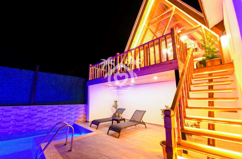 Bungalov Tuğçem, Kaş Kalkan bölgesinin Ulugöl mahallesinde yer alan, balayı konseptine uygun, özel ve huzurlu bir tatil imkanı sunan bir bungalovdur. 1 yatak odası ve 2 kişilik konaklama kapasitesiyle özellikle çiftler için tasarlanmıştır. En dikkat çekici özelliği, havuz terasının tamamen korunaklı olması ve dışarıdan hiçbir şekilde görünmemesidir, bu da balayı çiftlerine tam mahremiyet sağlar. Ahşabın bolca kullanıldığı modern bir yapıya sahip olan bungalov, doğa içerisinde sessiz ve sakin bir konumda yer almaktadır. Özel havuzu sayesinde çiftlerin rahat ve keyifli vakit geçirebileceği konfor sunan Bungalov Tuğçem, Kalkan merkeze 3 km uzaklıktadır.