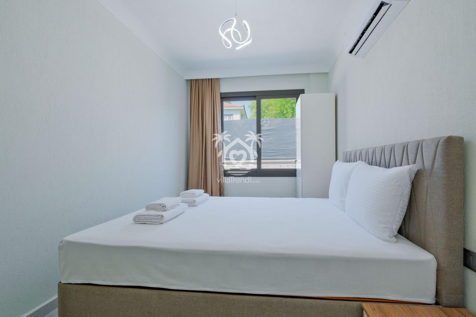 1. ve 2. Yatak Odası: Çift kişilik yatak, klima ve odaya özel banyo/WC konforu.