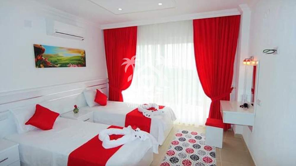- 2. Yatak Odası: İki adet tek kişilik yatağın bulunduğu bu aydınlık odada da klima, kıyafet dolabı, makyaj masası ve iki adet komodin mevcuttur. Bu odanın da kendine ait banyo ve tuvaleti bulunmakta ve balkona çıkışı vardır.