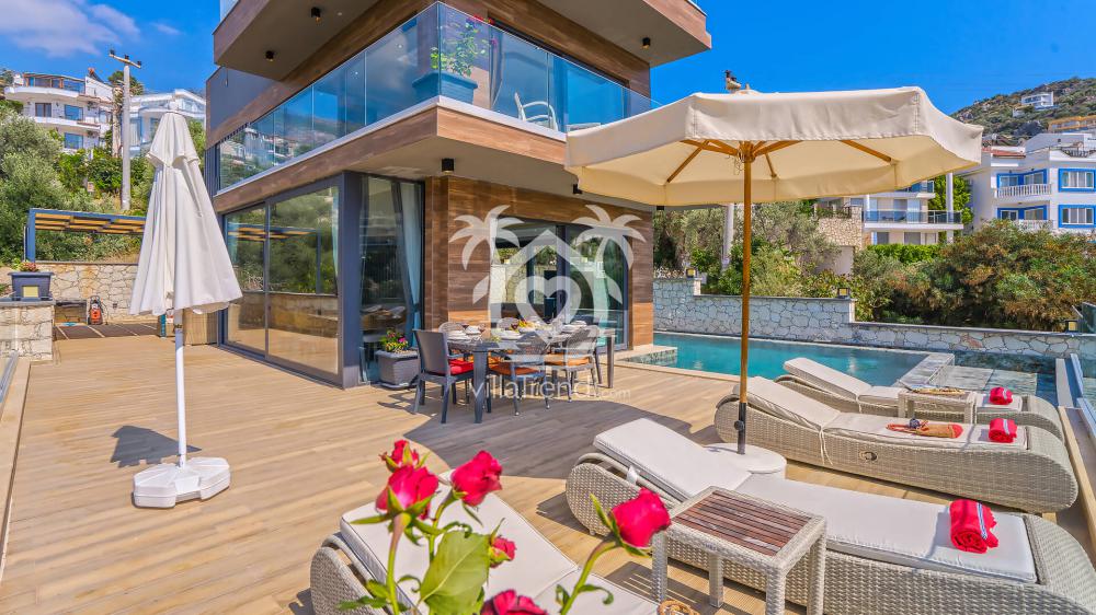 Villa Uğurlu Kışla :Kalkan'da deniz manzaralı, modern tasarımlı lüks villa: özel havuz, geniş bahçe, konforlu odalar ve güvenilir hizmet sunar.