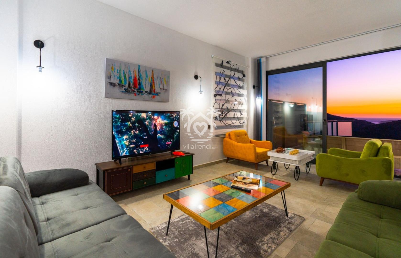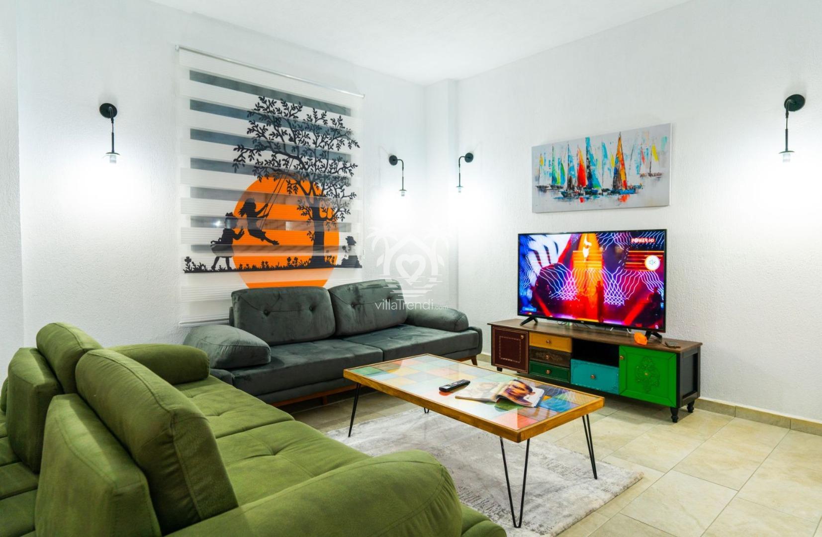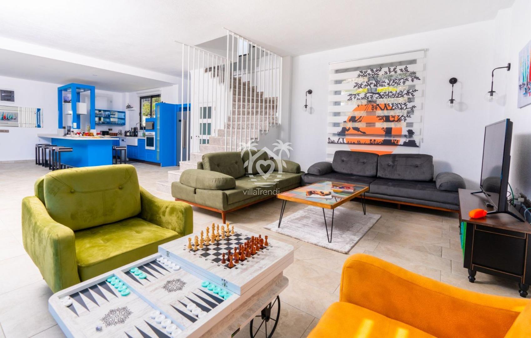 Modern Yaşam Alanı: Lüks detaylara sahip, klimalı ve internet donanımlı salonumuzdan doğrudan havuz terasına geçebilirsiniz. 🛋️📶