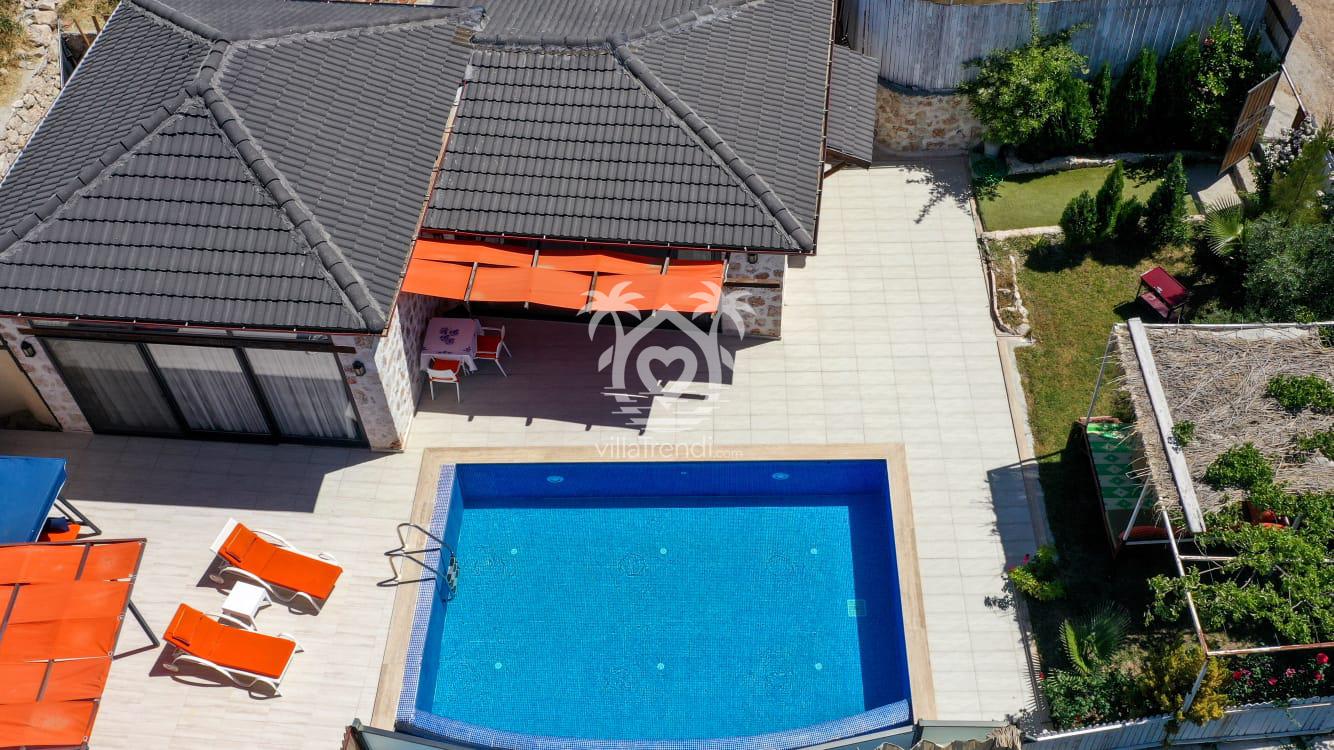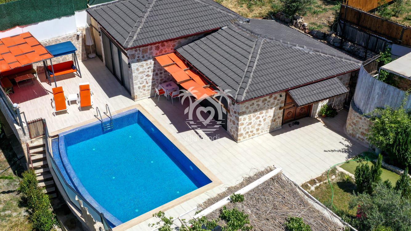 Kalkan İslamlar’da panoramik manzaralı Villa Manzara: 6 kişilik, özel havuzlu, doğayla iç içe, hijyen garantili ve huzurlu kiralık villa.