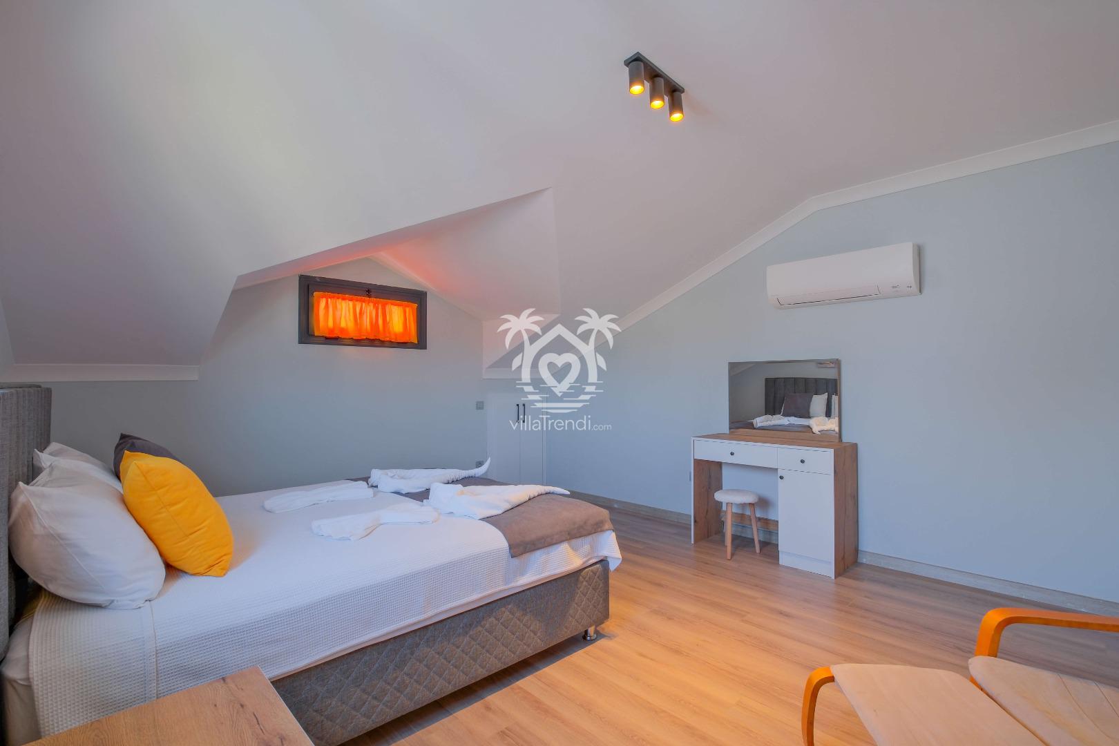 Fethiye sınırları içerisinde turistik belde Çalış’ta yer alan Villa White Palm 1, dubleks mimarisiyle 9 kişilik geniş bir konaklama hizmeti veriyor.