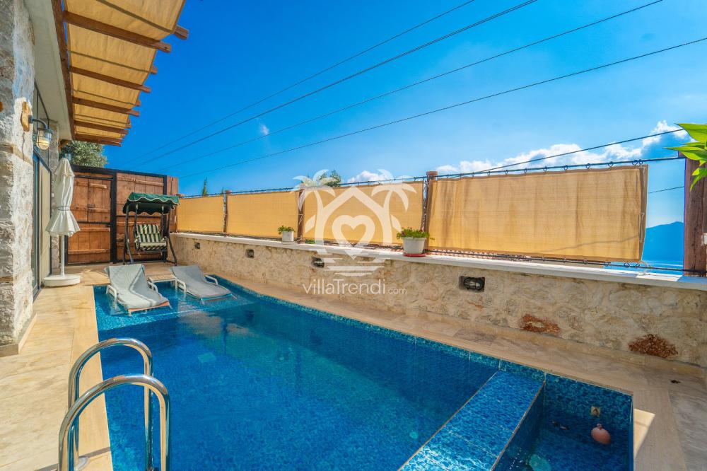 Deniz manzaralı Villa Sunshine, 6 kişilik geniş konaklama kapasitesiyle Kalkan’da, Kördere’de yer alıyor.