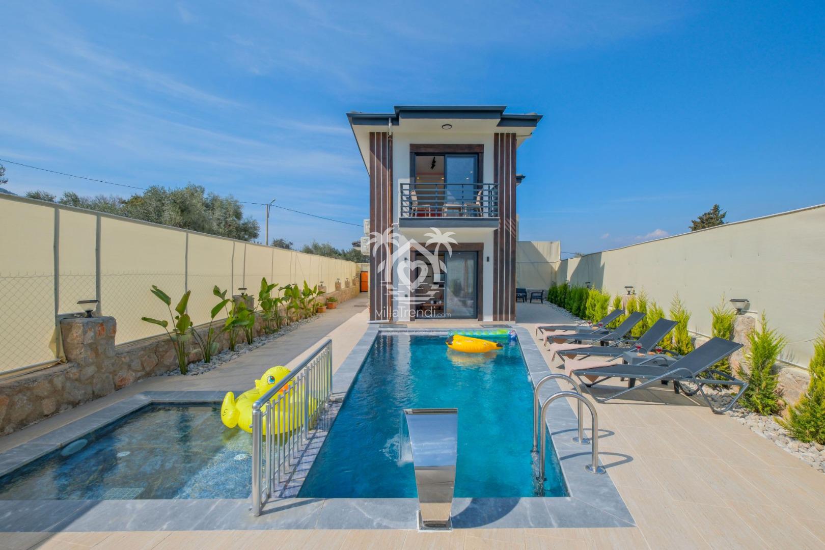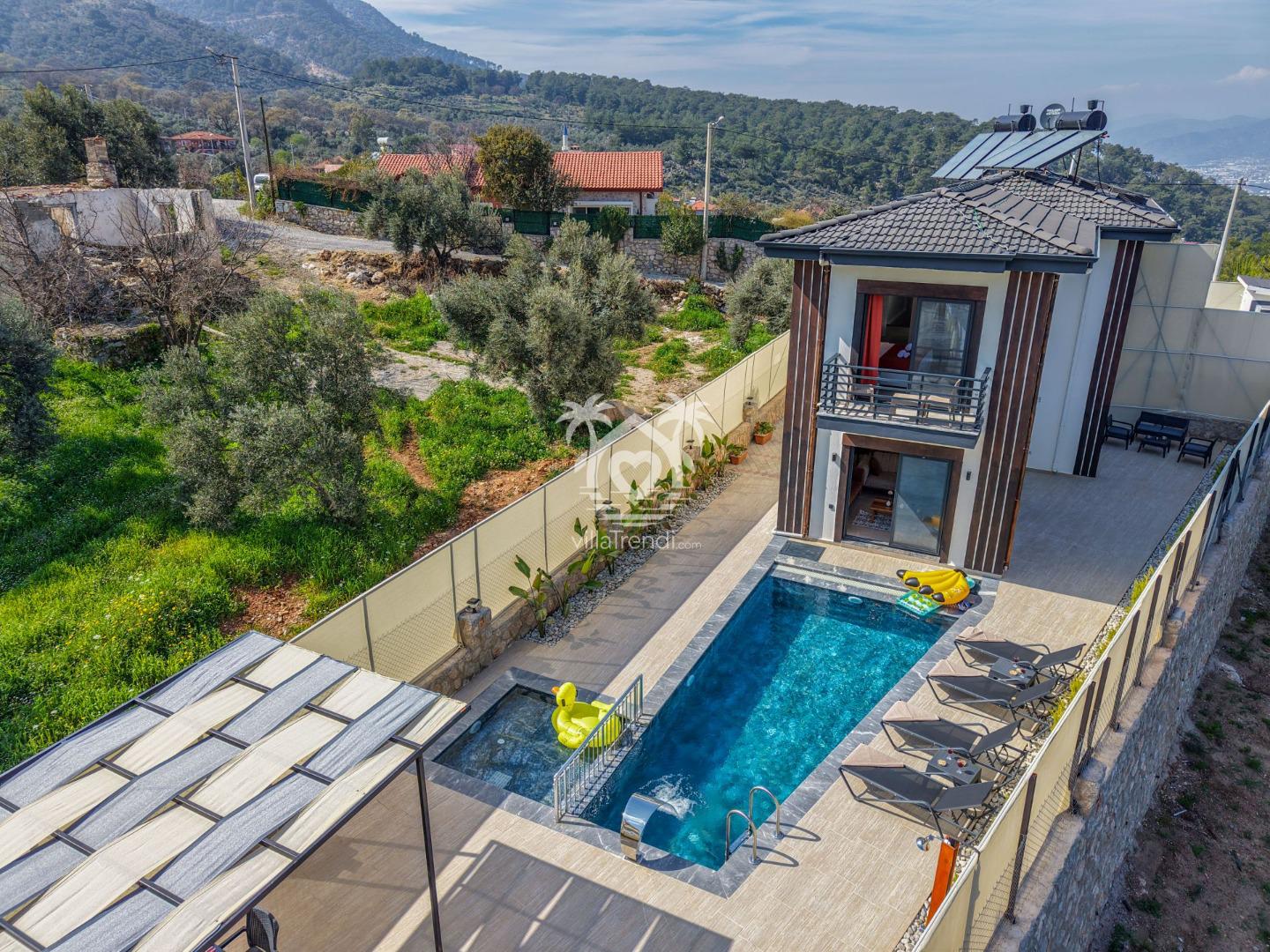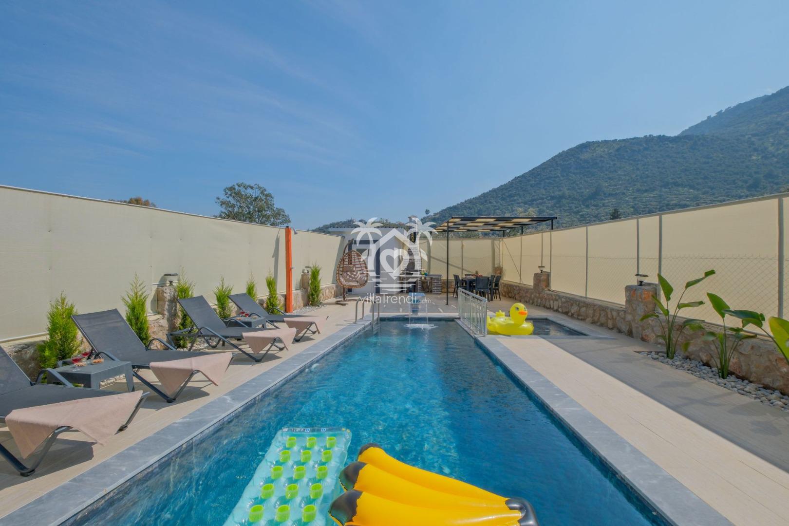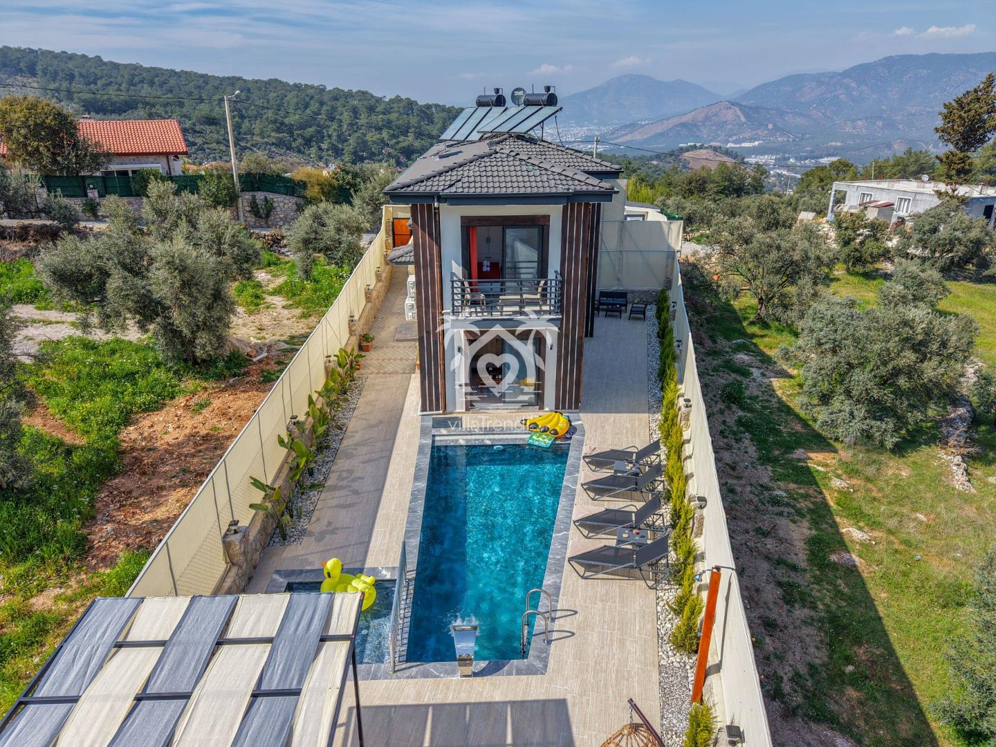 Fethiye’nin Modern Yüzü, Zeus 2’de Tatil Başlıyor! 🏛️✨ Villa Zeus 2, Bozyer’in eşsiz doğasında 6 kişilik kapasitesi, tam korunaklı havuzu ve miniklerin güvenle eğlenebileceği çocuk havuzuyla lüks bir aile tatili sunuyor. 3 süit yatak odası, yorgunluk atan jakuzisi ve modern tasarımıyla muhafazakar tatil anlayışını lüksle buluşturan bu özel villada, sevdiklerinizle unutulmaz anılar biriktirin! ✨🏊♂️🌲
