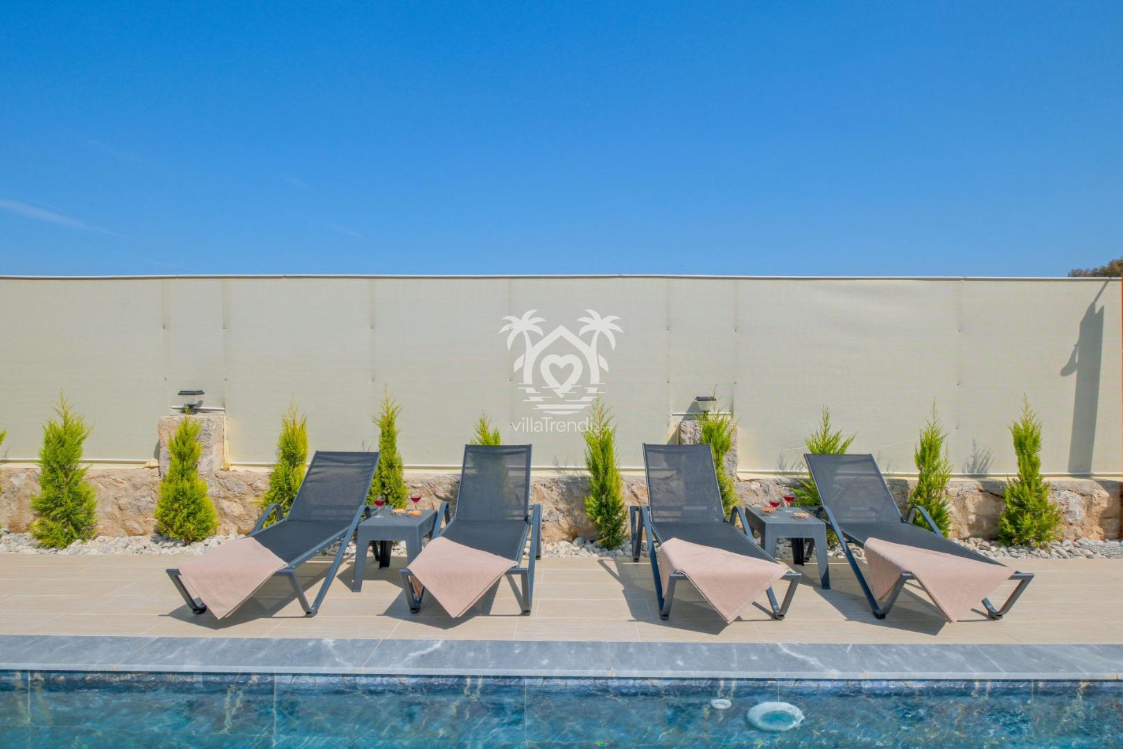 Korunaklı Mimari: Villanın havuz terası ve güneşlenme alanı, dışarıdan görünmeyecek şekilde korunaklı hale getirilmiştir. %100 mahremiyet garantisiyle huzurlu bir güneşlenme imkanı sunar. 🛡️☀️